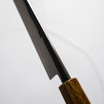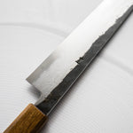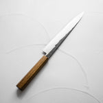 The Sujihiki knife, a traditional Japanese slicer, is designed for carving and fileting. With its long, narrow blade, typically ranging from 240mm to 330mm, it excels in creating clean, smooth cuts through meat and fish. Its length ensures long, uninterrupted strokes, making it perfect for precise slicing tasks.