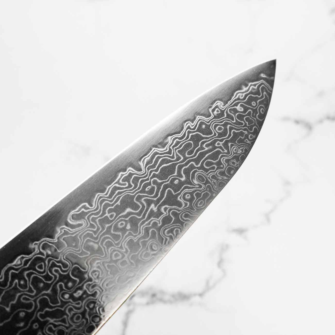 Japanese SG2, also known as R2 steel, is a high-end, powdered metallurgy stainless steel and one of the finest knife-making steels available in Japan. It is a favourite of many for its exceptional hardness and edge retention. Its fine, uniform grain structure enables razor-sharp edges, all the while holding an edge for much longer than Carbon steel knives, without needing to be concerned about rust appearing.
