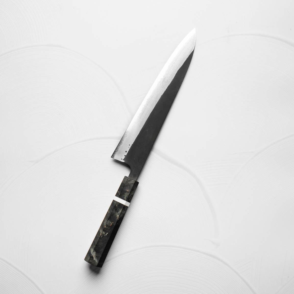 Hatsukokoro Shinkiro Blue Super Damascus Kurouchi Gyuto 240mm - Maple