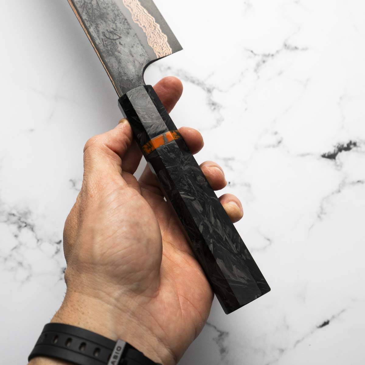 Hatsukokoro Yorokobi SLD Kurouchi Damascus Kiritsuke 240mm - Carbon Fibre