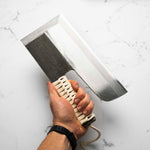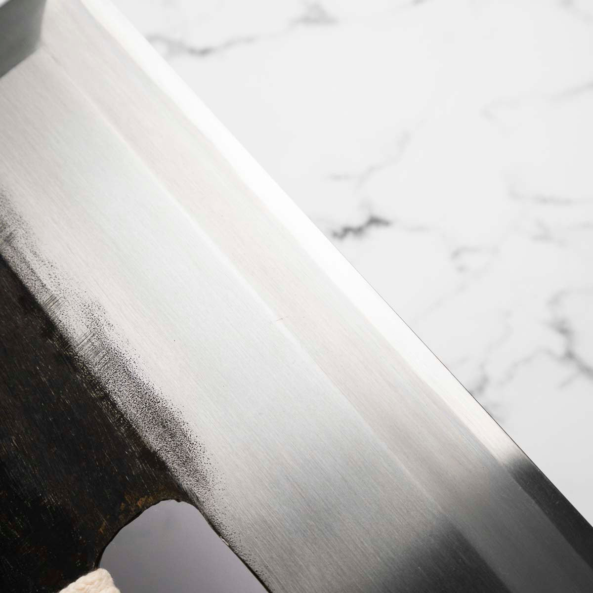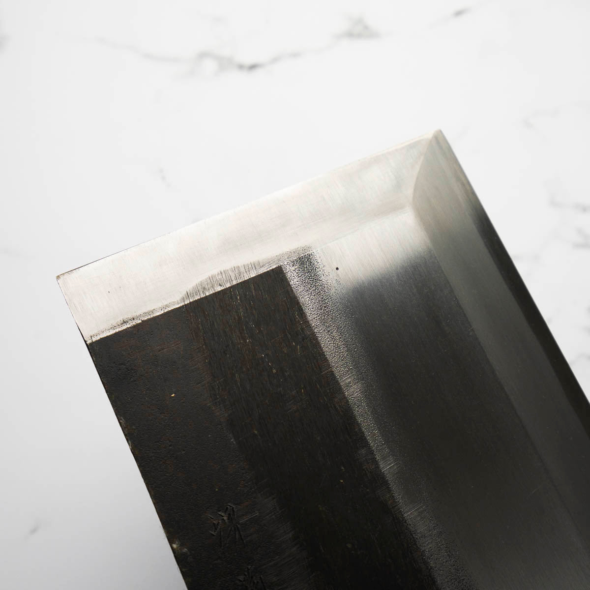 The Soba Kiri is the traditional single-edged knife for cutting soba, pasta, and noodles. It is very difficult to forge, requiring constant straightening. We left this task up to perhaps the most experienced forger in Sakai, the masterful Yoshikazu Tanaka.