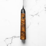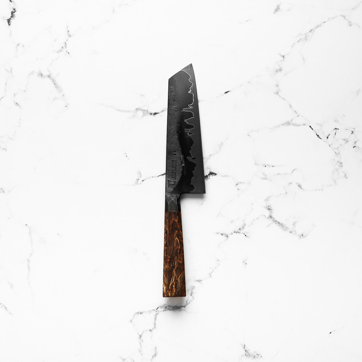 The Bunka knife, a versatile and traditional Japanese kitchen tool, features a distinctive, angular tip and a wide blade. It's designed for precision tasks like slicing, dicing, and chopping. Ideal for handling vegetables, meat, and fish, the Bunka is a multifunctional knife celebrated for its utility and unique aesthetic.
