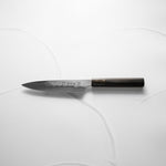 The Petty knife, a quintessential tool in Japanese cuisine, is a smaller utility knife used for precise, delicate tasks. Often considered a smaller sibling to the chef's knife, it excels in hand-held tasks like peeling, trimming, and intricate cutting. Its versatility makes it an essential for detailed culinary work.