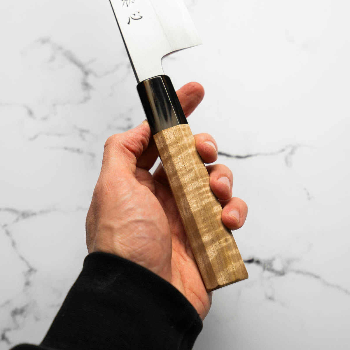 In an exclusive collaboration between Chef’s Edge and Sakai Kikumori, Nakagawa-san crafted a unique series of knives featuring taller blade profiles, specially designed to deliver outstanding handling, comfort, and cutting performance. Each blade embodies Nakagawa’s deep commitment to excellence and showcases why he is becoming one of Japan’s most celebrated knife-makers.