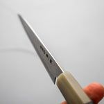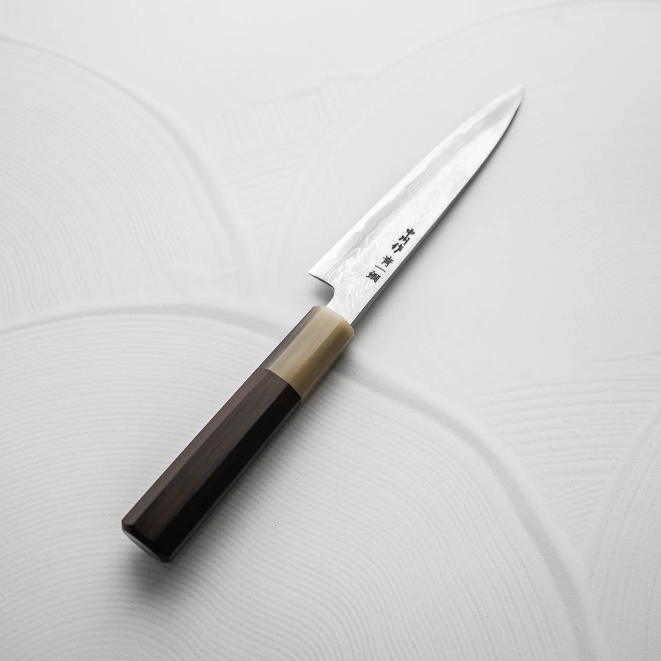 The Petty knife, a quintessential tool in Japanese cuisine, is a smaller utility knife used for precise, delicate tasks. Often considered a smaller sibling to the chef's knife, it excels in hand-held tasks like peeling, trimming, and intricate cutting. Its versatility makes it an essential for detailed culinary work.