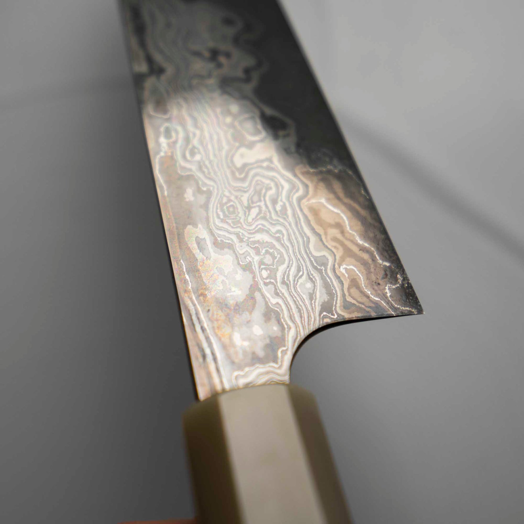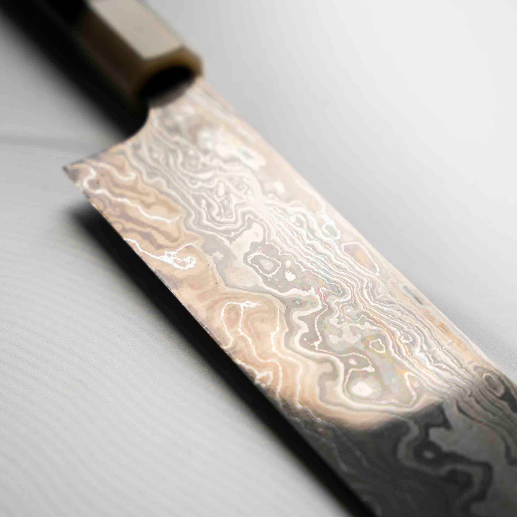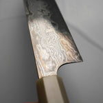 Nigara Hamono are truly some of the most experienced knifemakers in Japan. Now on their 8th generation of blacksmiths, they are masters at stainless damascus forging and heat treatment. The Anmon Damascus we have available have a matte finish and are polished underneath, resulting in a brilliant visual contrast.