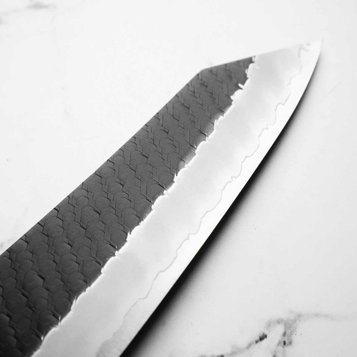 Japanese SG2, also known as R2 steel, is a high-end, powdered metallurgy stainless steel and one of the finest knife-making steels available in Japan. It is a favourite of many for its exceptional hardness and edge retention. Its fine, uniform grain structure enables razor-sharp edges, all the while holding an edge for much longer than Carbon steel knives, without needing to be concerned about rust appearing.