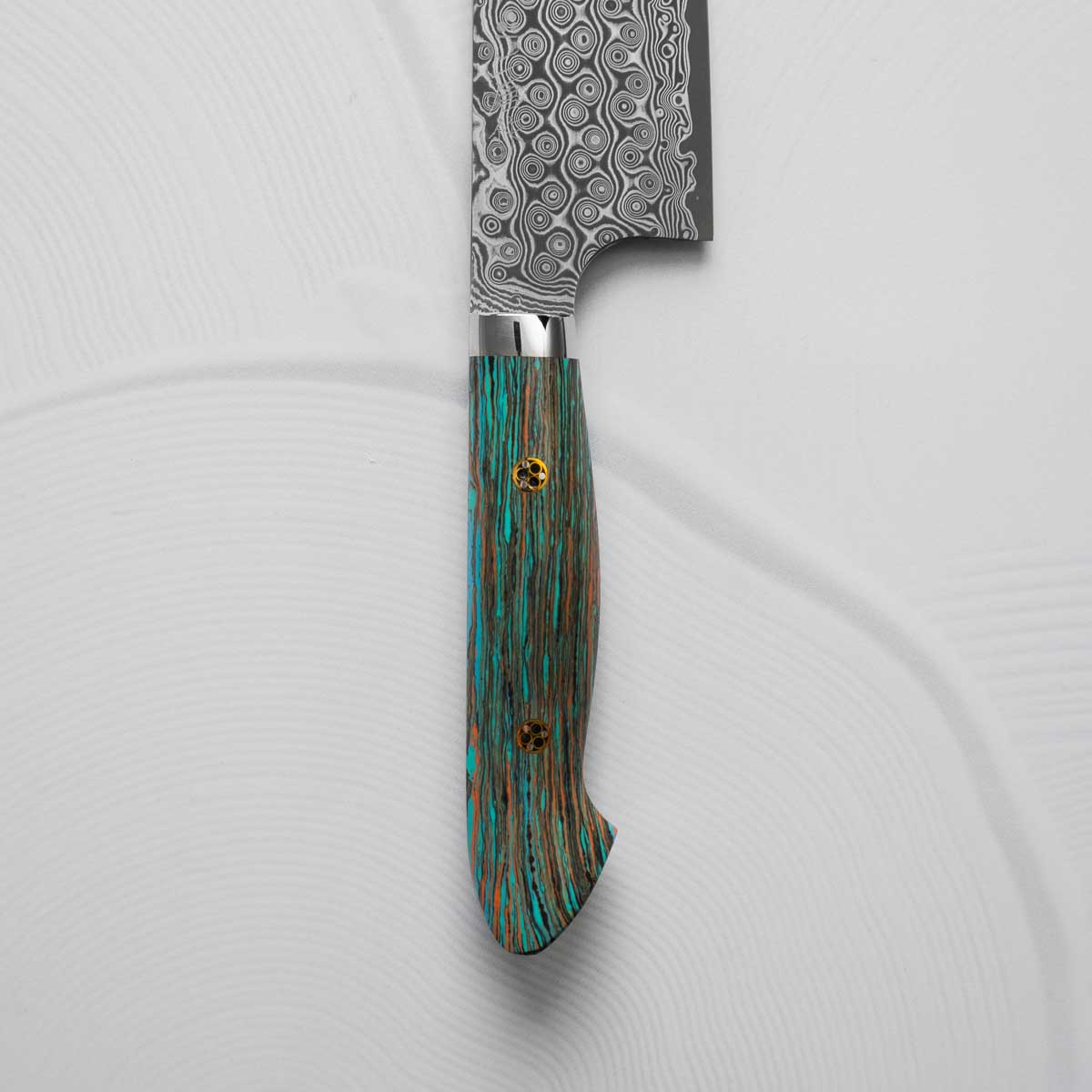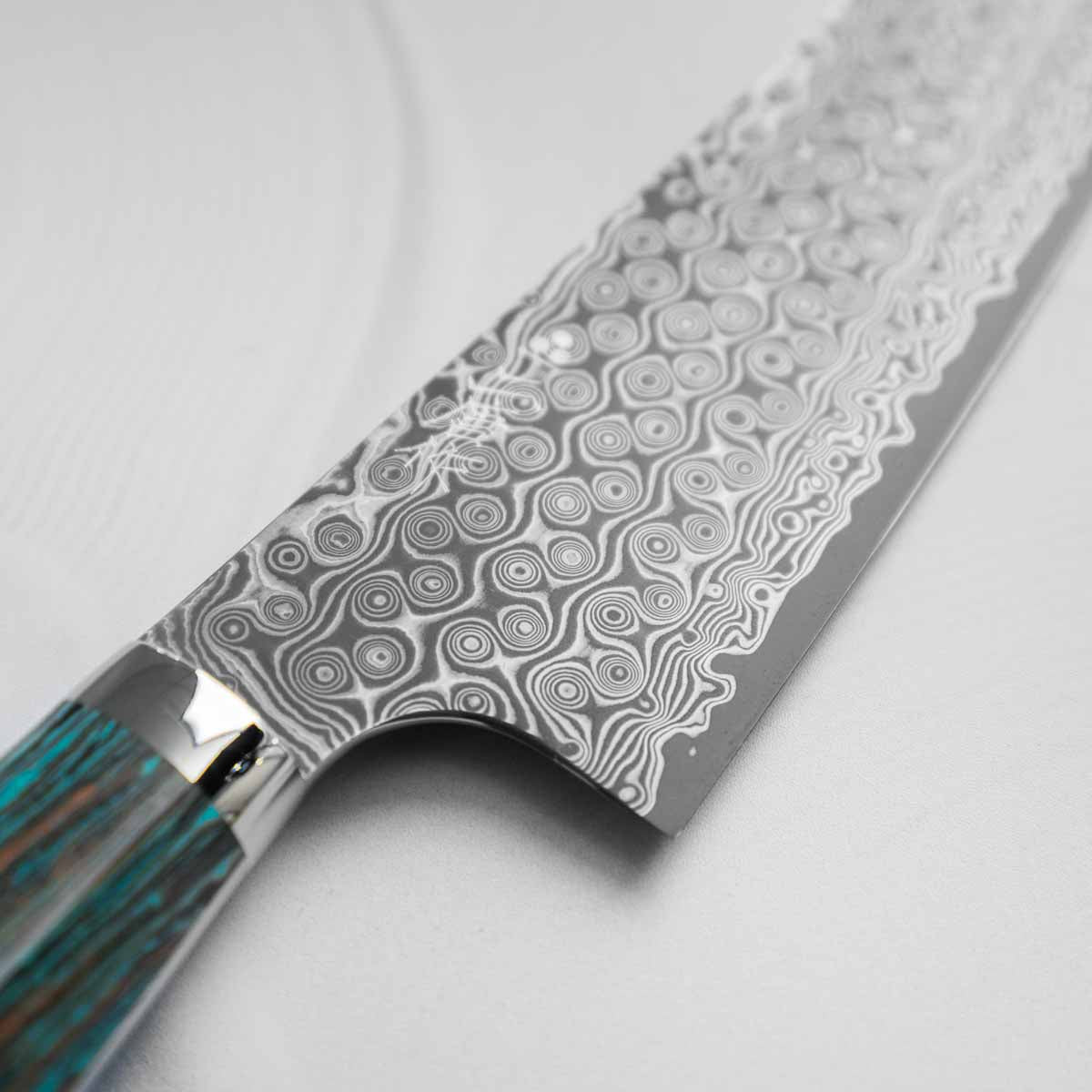 Nigara Hamono SG2 Raindrop Damascus Kiritsuke 210mm - Turquoise