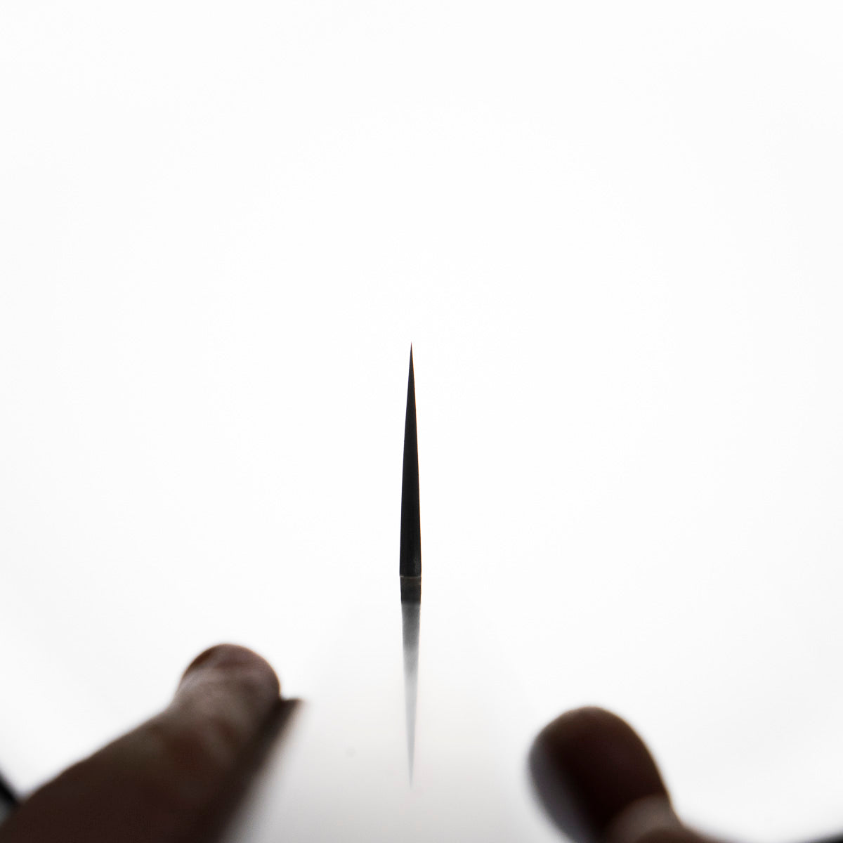 This knife is made from a high-carbon steel and as such, will require a little more care than a regular off-the-shelf knife. It must be dried shortly after use, as prolonged exposure to moisture can cause rust spots to appear. A very light coat of oil during storage also helps to prevent rust spots. A patina (colouration and seasoning of the steel) will occur with use.