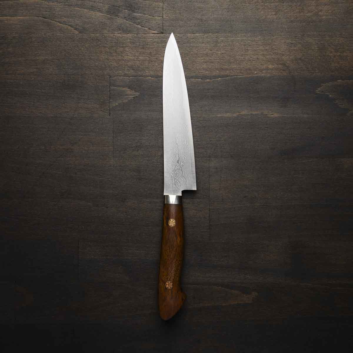 The Petty knife, a quintessential tool in Japanese cuisine, is a smaller utility knife used for precise, delicate tasks. Often considered a smaller sibling to the chef's knife, it excels in hand-held tasks like peeling, trimming, and intricate cutting. Its versatility makes it an essential for detailed culinary work.