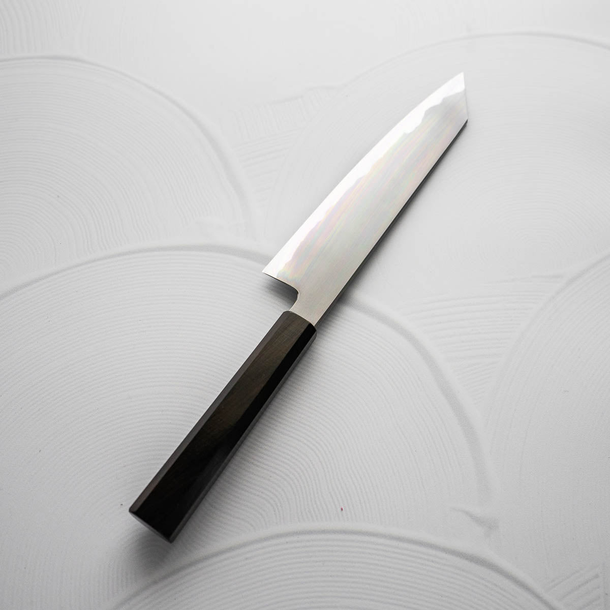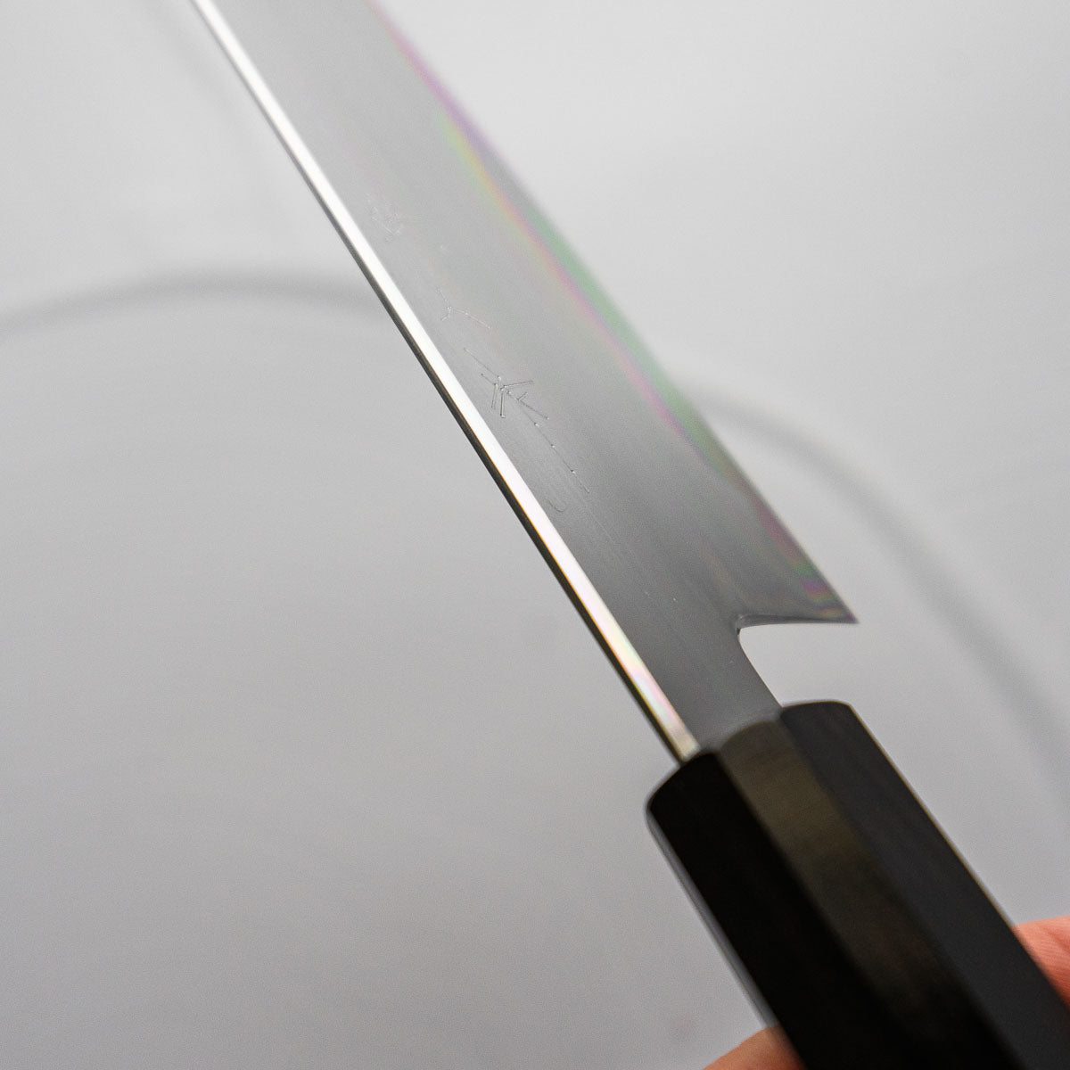 Naohito Myojin is a fast-rising sharpener working out of Kochi prefecture. His work is now in such high demand that long wait times are now the norm. He is the sharpener behind the Tetsujin line and the 'Fujiyama' line by Konosuke.
