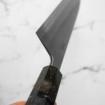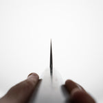 One of their most celebrated offerings is the SKD steel series — featuring a semi-stainless high-carbon core clad in stainless steel. The blades showcase a distinctive wide-bevel grind with a shallow hammer texture that sits stylistically between nashiji and kurouchi finishes. Paired with traditional burnt chestnut handles, each knife reflects Yoshikane’s dedication to consistency, craftsmanship, and timeless design.