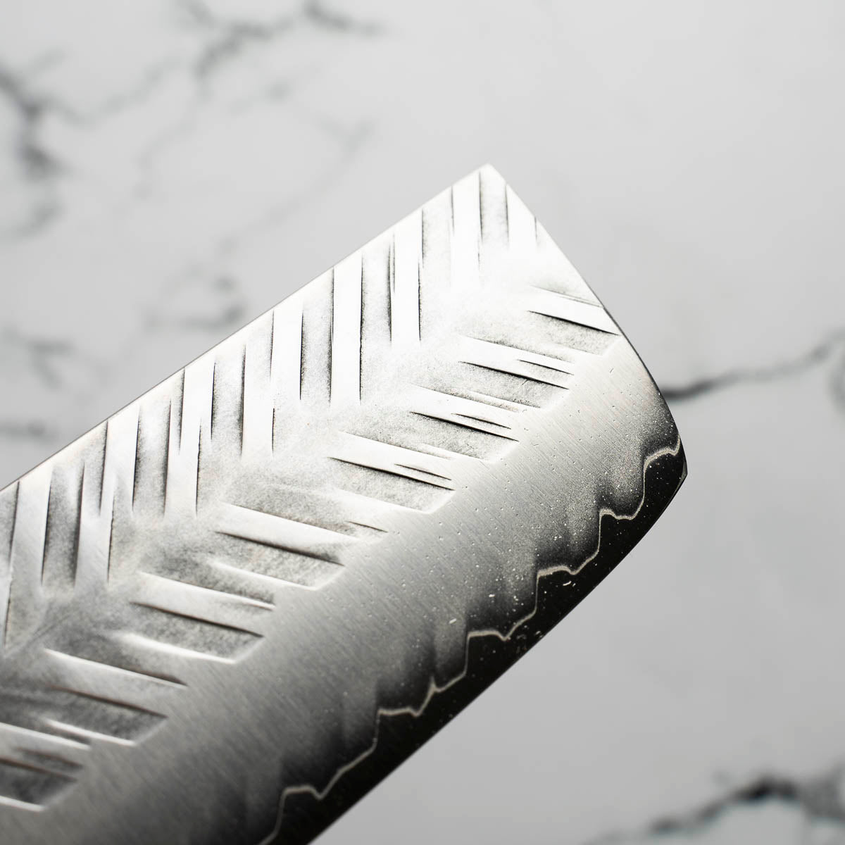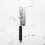 The Nakiri knife, revered in Japanese culinary traditions, is engineered for exceptional vegetable cutting. Featuring a distinct, straight-edged, and rectangular blade, it excels in creating uniform, precise cuts and aesthetic presentation. Its technical design ensures efficiency and precision, making it a valuable tool for both professional chefs and home cooks.