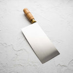 A Chinese cleaver, known as a Cai Dao, is a multipurpose kitchen knife traditional in Chinese cuisine. Characterized by its large, rectangular blade, it excels in chopping, slicing, and mincing. Despite its robust appearance, it's designed for precision tasks, from slicing meat to finely mincing herbs and vegetables.