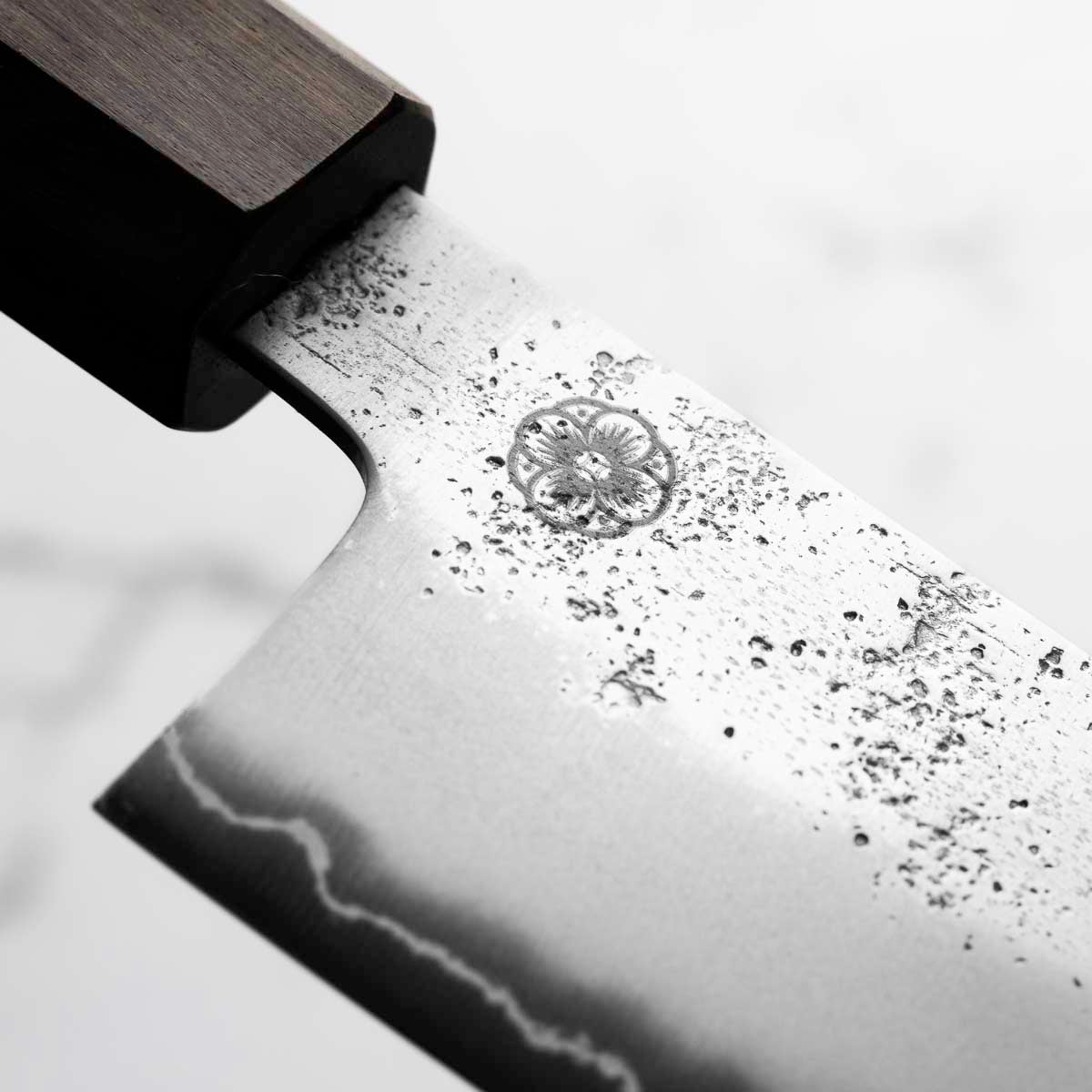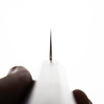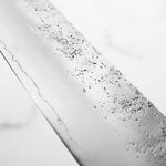 Japanese Ginsan steel, also known as Silver-3 or G3, is an underrated high-grade semi-stainless steel loved by many for being in the ‘goldilocks zone’ of knife steels. It holds a very respectable edge, but is effortless to sharpen. It is considered the semi-stainless version of White 2. It is the knife steel of choice for many home cooks and professional chefs alike.