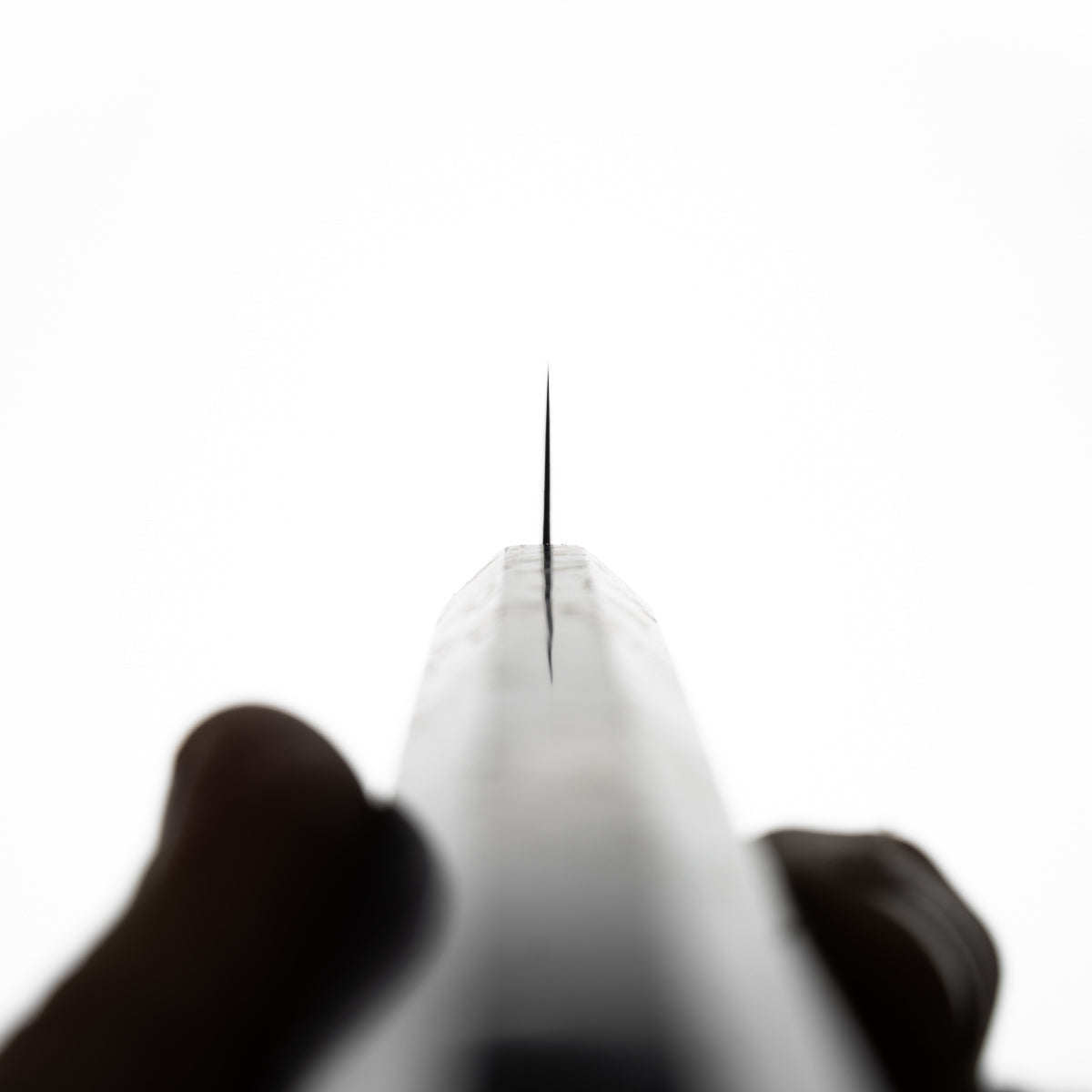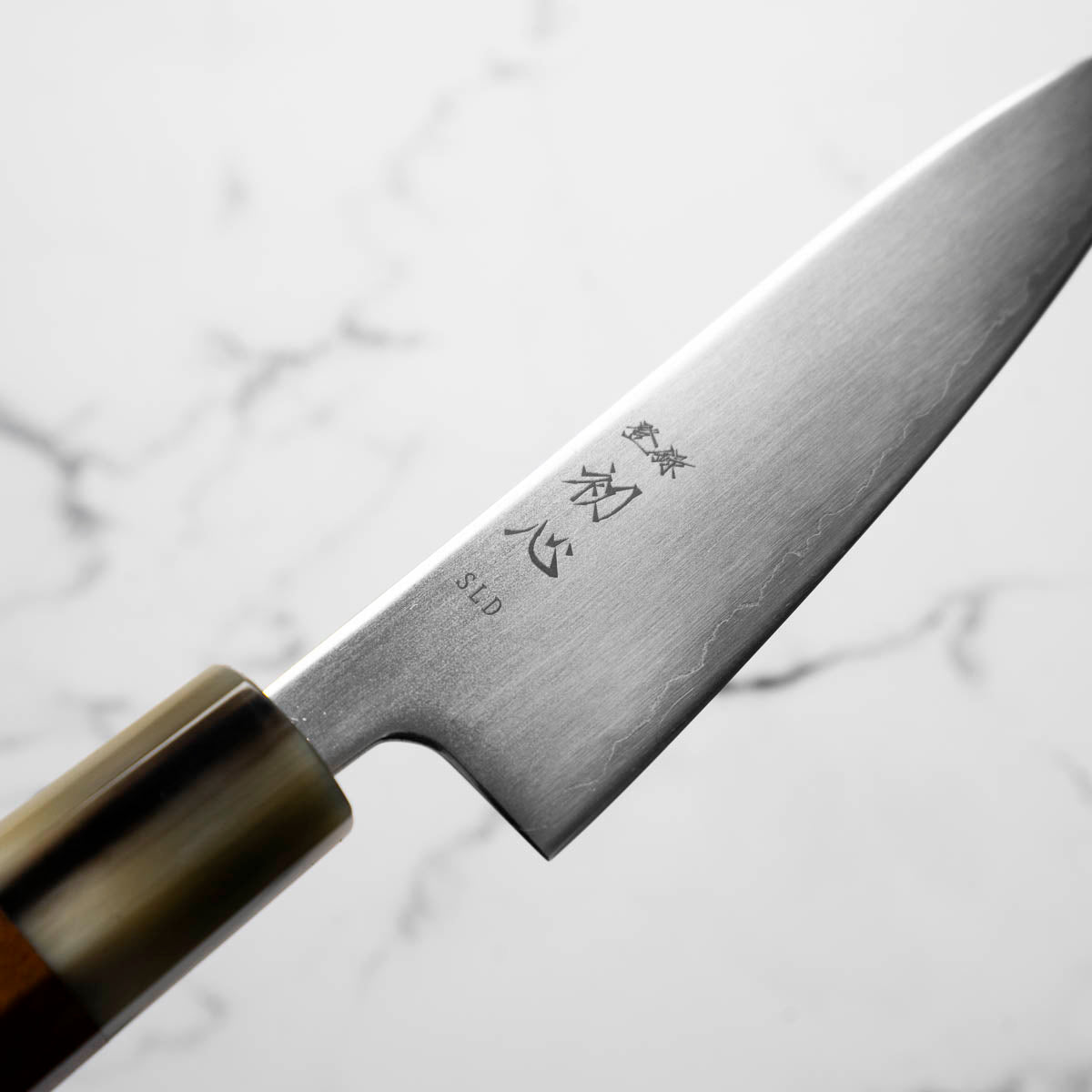 Japanese SLD steel is a semi-stainless steel crafted through advanced metallurgy. It is used often in Sanjo knives, has a non-chippy edge and is extremely tough. This high-carbon steel, enriched with chromium and molybdenum, offers excellent performance, but be mindful not to leave it wet for extended periods.