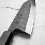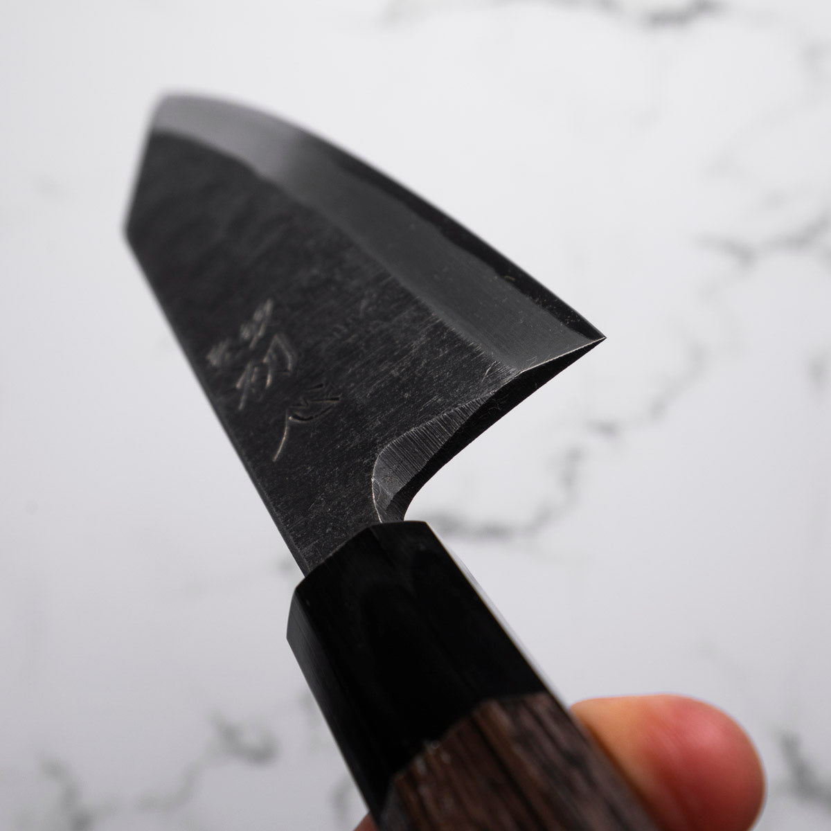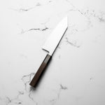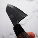 The Deba knife, deeply rooted in Japanese culinary tradition, is a robust, single-bevel knife (sometimes double) primarily designed for fileting fish. Its thick, heavy blade effortlessly glides through fish bones and joints, while preserving delicate flesh. Ideal for seafood preparation, the Deba is a staple in Japanese kitchens for its precision and strength.