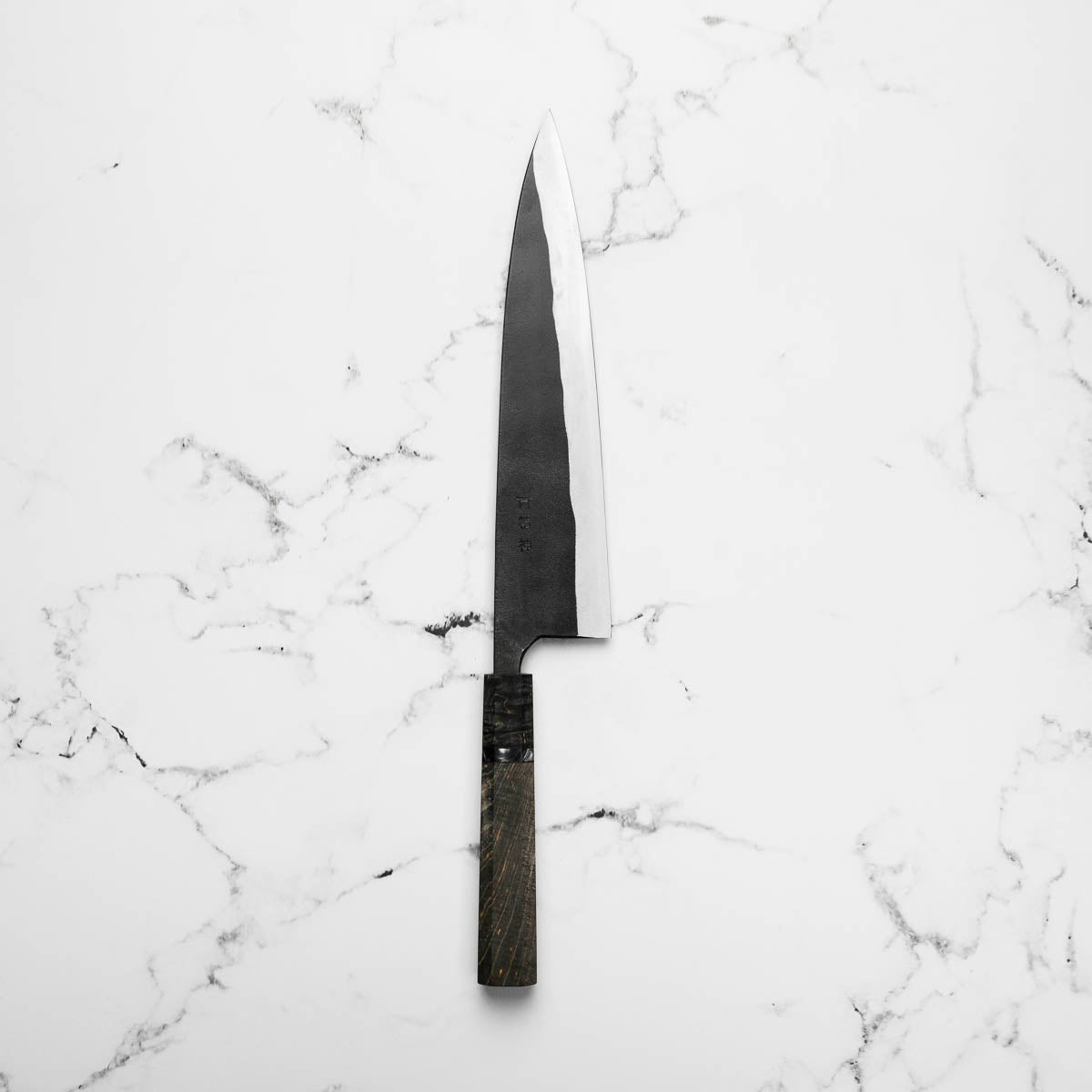 Kajibee "Seishin" White 2 Gyuto 240mm - Dark Maple