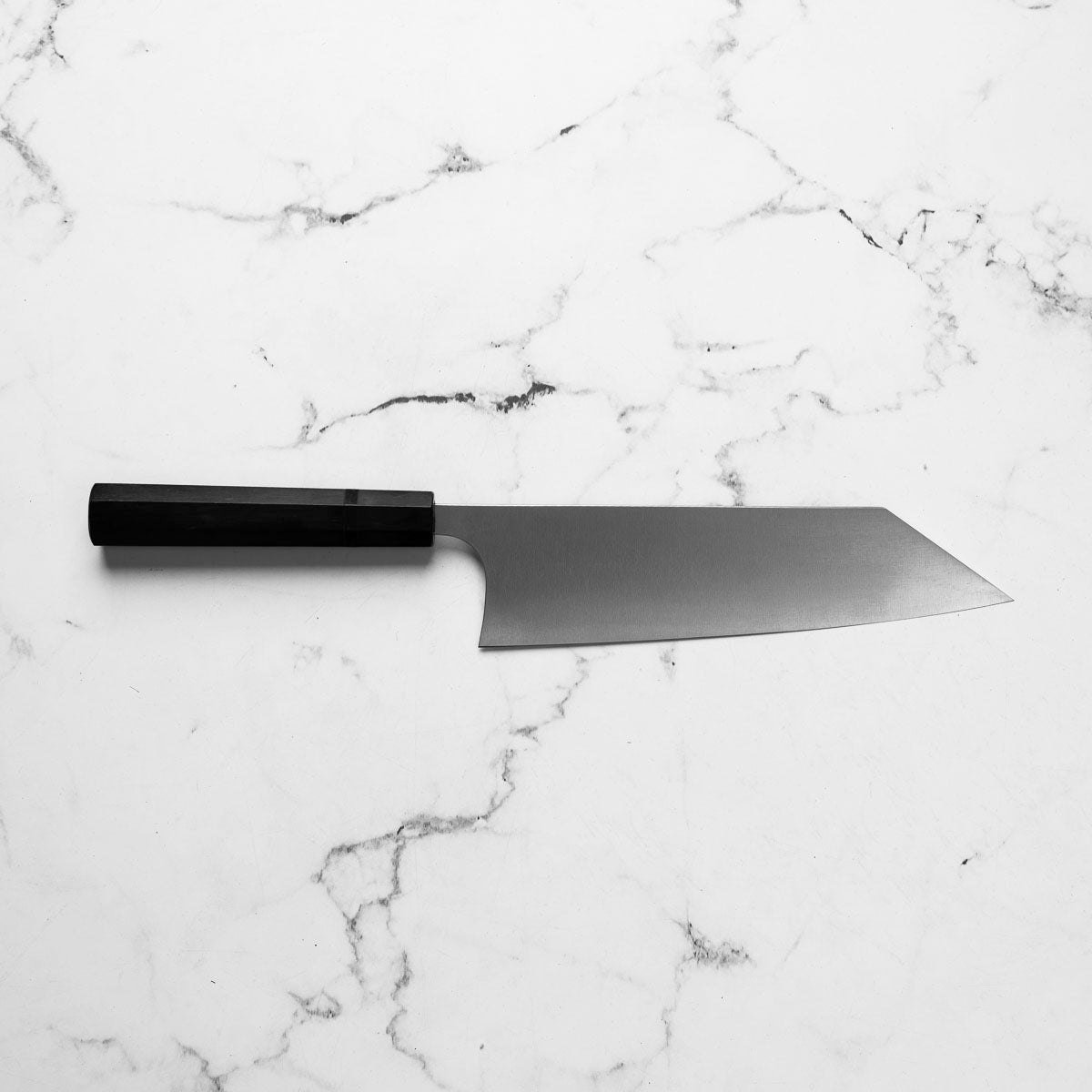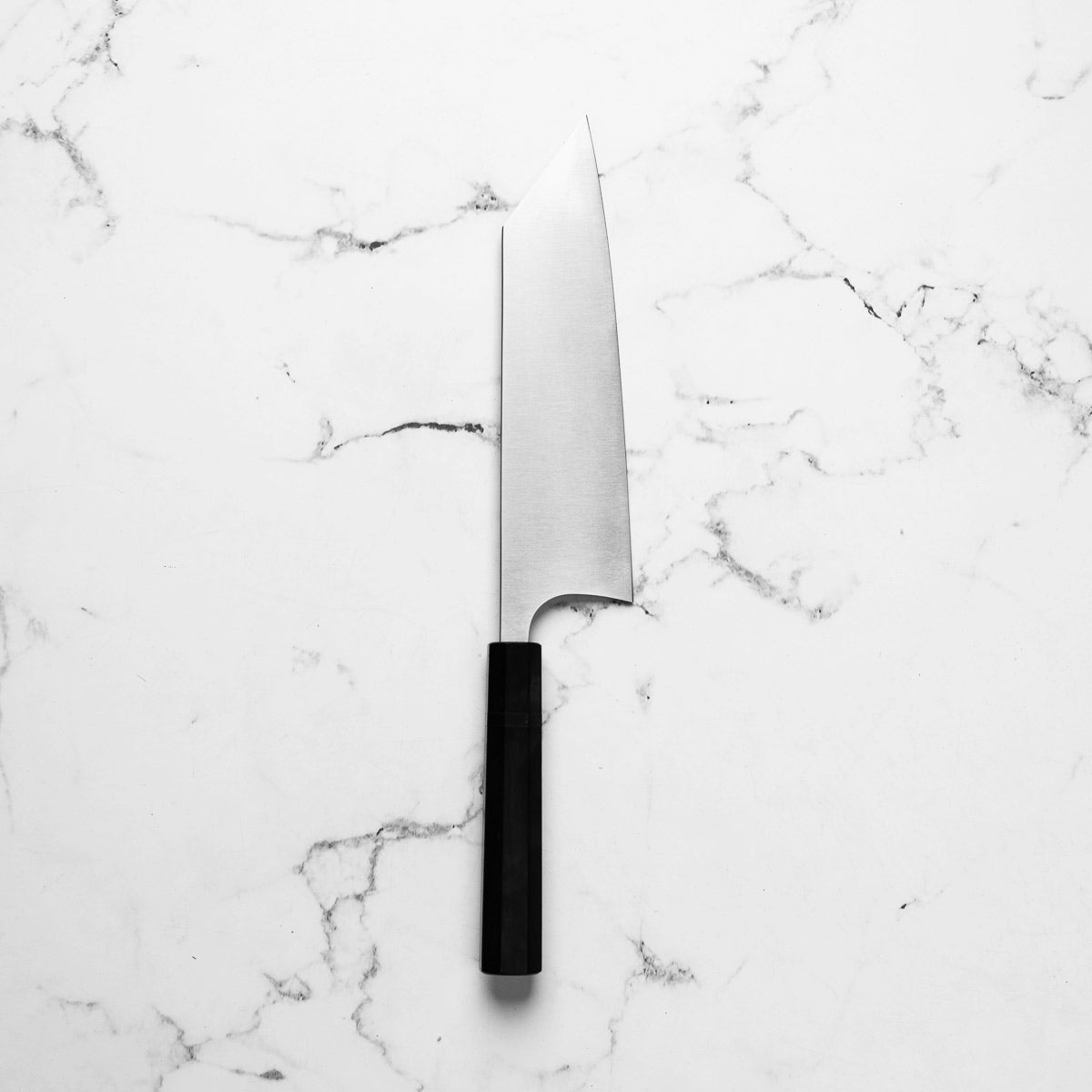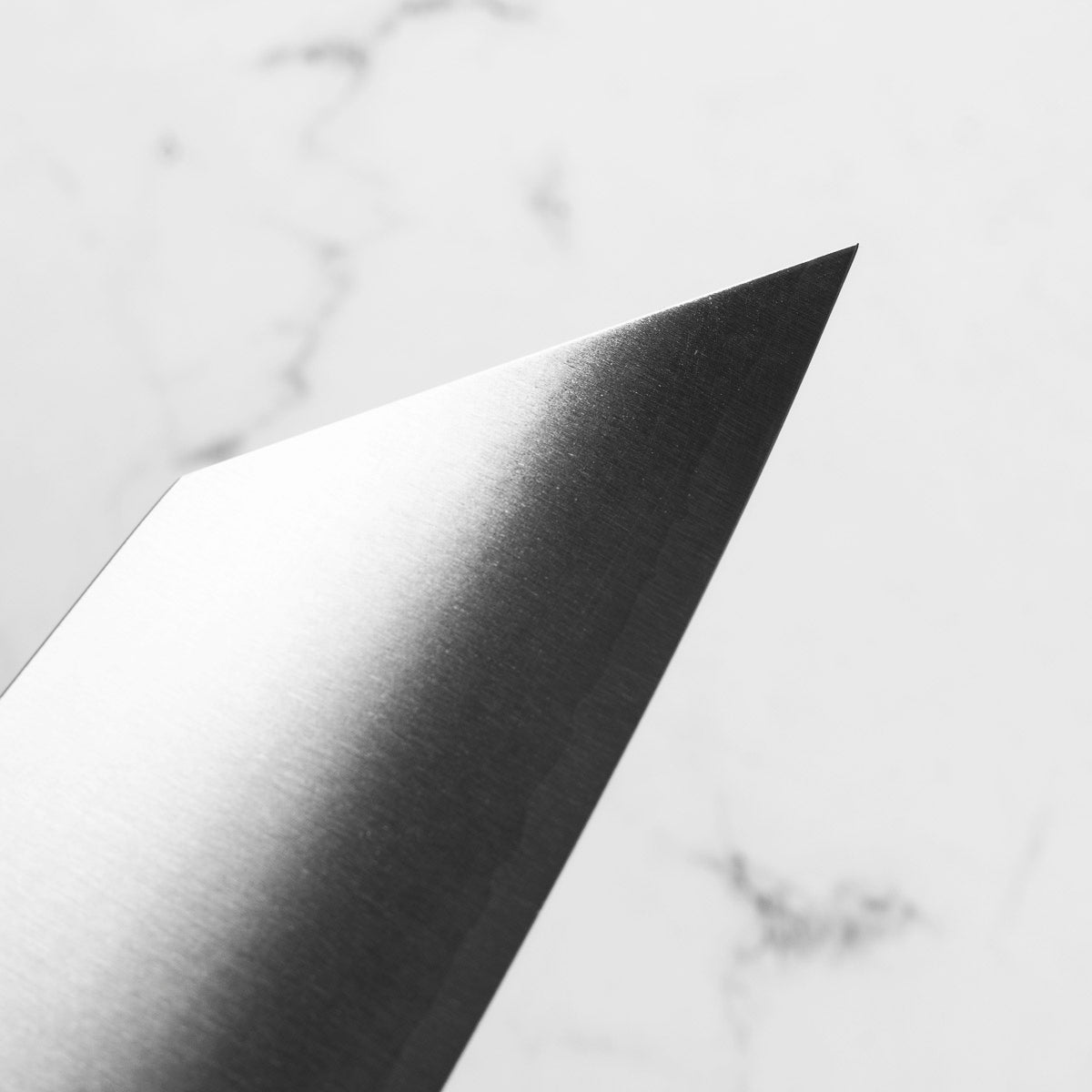 The Bunka is your small/medium sized prep solution. If you prefer a slightly shorter blade length but still need to prep veggies and smaller cuts of meat, this is your stop. The angled "K-Tip" allows for finer tip work and can be used to sweep ingredients across the board so you don't dull your edge.