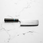 The Nakiri knife, revered in Japanese culinary traditions, is engineered for exceptional vegetable cutting. Featuring a distinct, straight-edged, and rectangular blade, it excels in creating uniform, precise cuts and aesthetic presentation. Its technical design ensures efficiency and precision, making it a valuable tool for both professional chefs and home cooks.