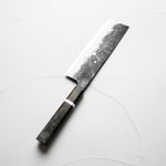 Based in the famed knifemaking city of Sanjo, Niigata, Naoki Mazaki is a talented young artisan whose work is defined by meticulous attention to detail and complete dedication to traditional craftsmanship. Working entirely by himself—from forging and shaping, to sharpening and fitting handles—Mazaki specializes in knives forged from Shirogami #2 steel with iron cladding.