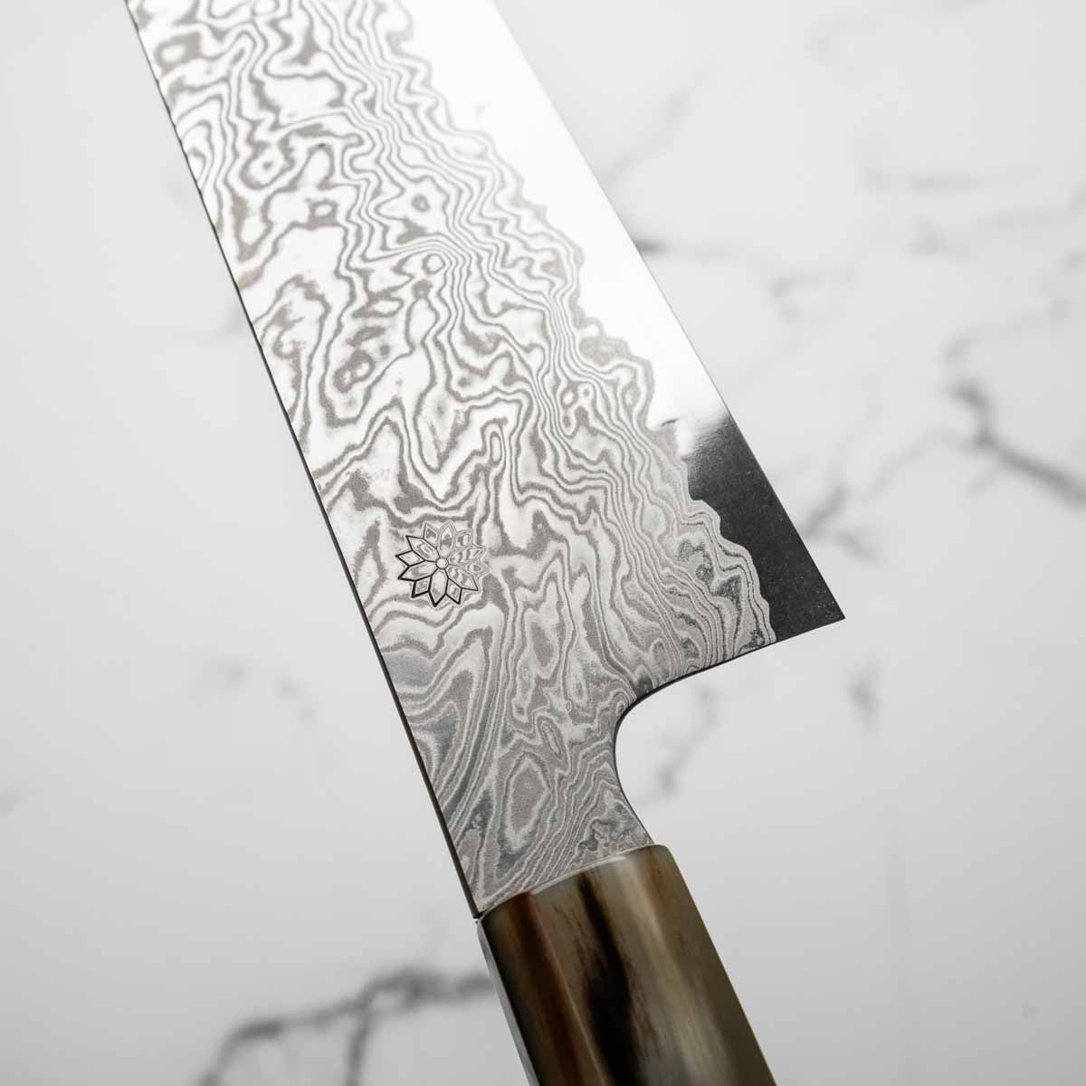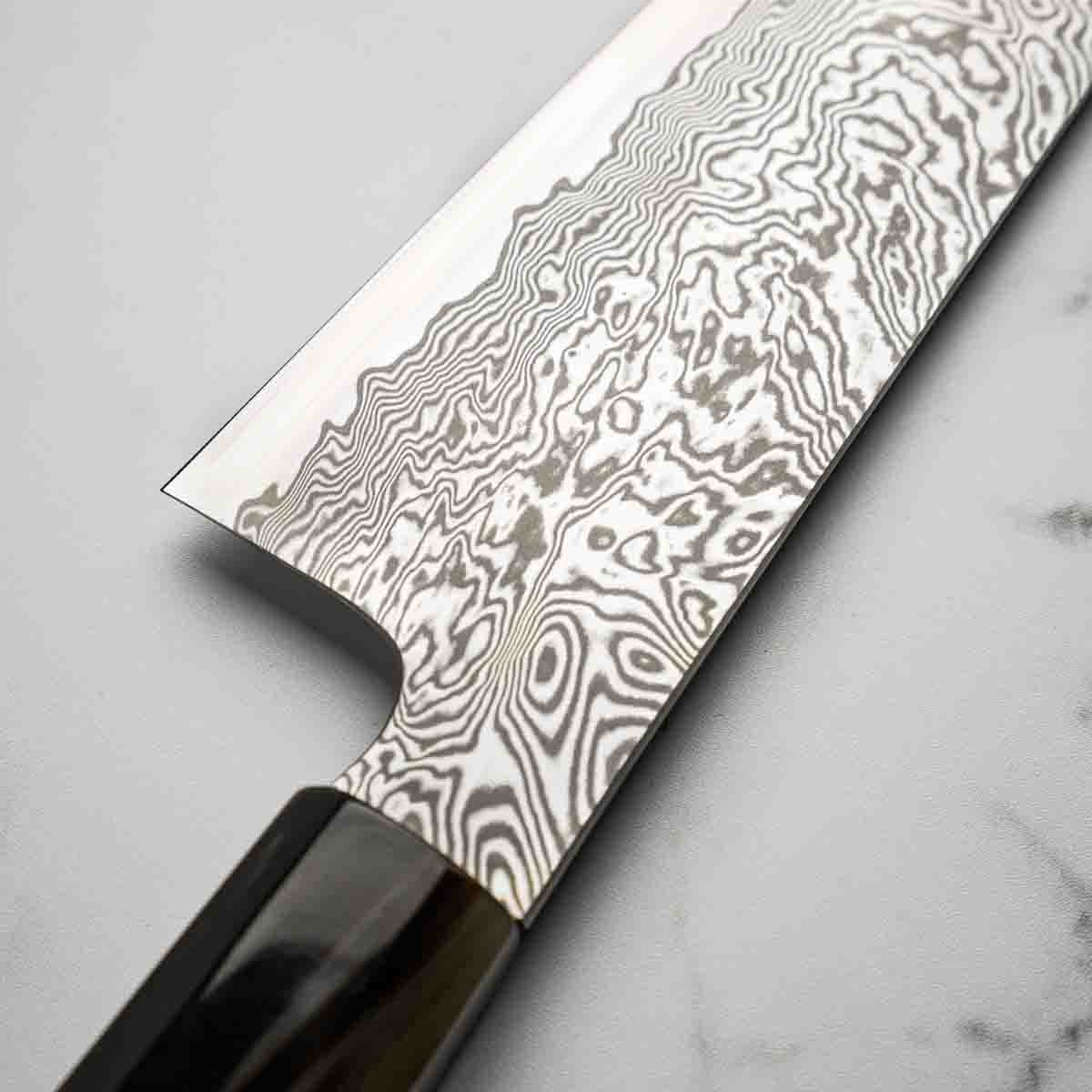 Sakai Kikumori "Minamo" ATS34 Damascus Gyuto 210mm - Ebony & Blonde