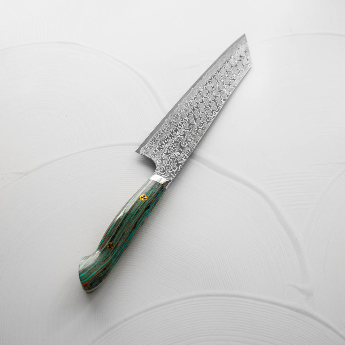 Nigara Hamono SG2 Raindrop Damascus Kiritsuke 240mm - Turquoise