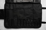 Elevate the way you carry your culinary essentials with our distinguished 17-Pocket PVC Knife Bag. Every inch of this artisanal bag exudes luxury, from its authentic buffalo leather accents to its robust 1000D PVC. Impress at first sight with the bag’s elegantly integrated business card holder, as well as the convenience of an easy-snap leather handle and expansive pockets for your cutlery.
