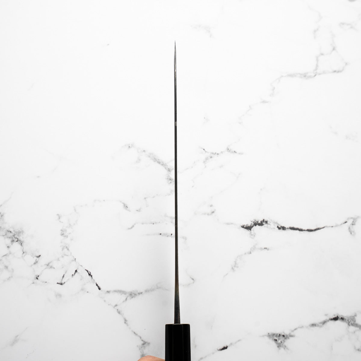 Japanese White Steel #2, a traditional high-carbon steel, is cherished for its purity and fine grain structure, enabling razor-sharp edges, at the cost of being reactive. It is one of the easiest steels to sharpen, but cannot be left wet for even short periods otherwise rust spots can occur. If you’re fastidious in your knife maintenance, this knife steel can be extremely rewarding to use.