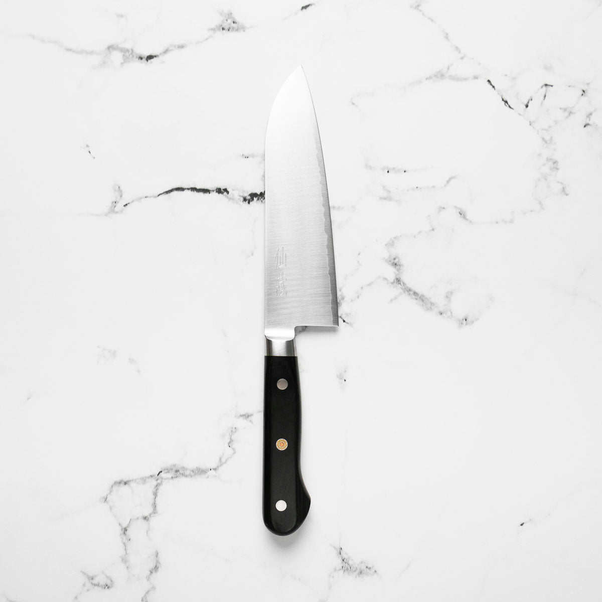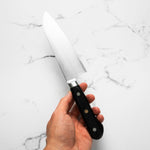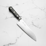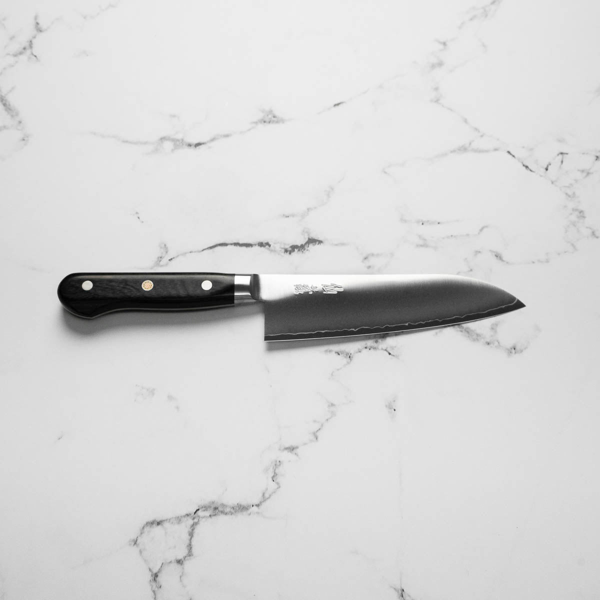 The Santoku knife, a classic in Japanese kitchens, translates to "three virtues," symbolizing its proficiency in slicing, dicing, and mincing. With a shorter, versatile blade and a balanced design, it's ideal for a range of tasks, from cutting meat to chopping vegetables, making it a beloved all-purpose tool.