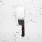 A Japanese butcher cleaver, distinct from its Western counterpart, is a specialized tool designed for precision meat cutting. It features a robust, wide blade adept at slicing through large cuts of meat and bones with ease and efficiency. This cleaver combines traditional Japanese craftsmanship with functionality, essential for professional butchery.