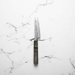 The Petty knife, a quintessential tool in Japanese cuisine, is a smaller utility knife used for precise, delicate tasks. Often considered a smaller sibling to the chef's knife, it excels in hand-held tasks like peeling, trimming, and intricate cutting. Its versatility makes it an essential for detailed culinary work.