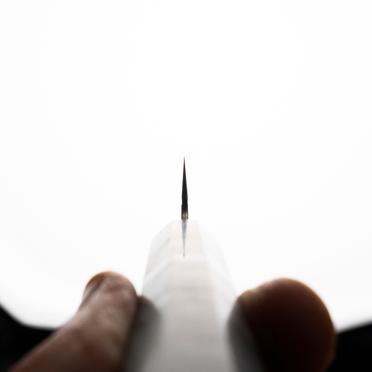Japanese SG2, also known as R2 steel, is a high-end, powdered metallurgy stainless steel and one of the finest knife-making steels available in Japan. It is a favourite of many for its exceptional hardness and edge retention. Its fine, uniform grain structure enables razor-sharp edges, all the while holding an edge for much longer than Carbon steel knives, without needing to be concerned about rust appearing.