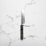 The Petty knife, a quintessential tool in Japanese cuisine, is a smaller utility knife used for precise, delicate tasks. Often considered a smaller sibling to the chef's knife, it excels in hand-held tasks like peeling, trimming, and intricate cutting. Its versatility makes it an essential for detailed culinary work.