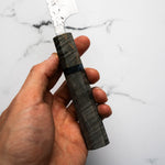 Japanese SG2, also known as R2 steel, is a high-end, powdered metallurgy stainless steel and one of the finest knife-making steels available in Japan. It is a favourite of many for its exceptional hardness and edge retention. Its fine, uniform grain structure enables razor-sharp edges, all the while holding an edge for much longer than Carbon steel knives, without needing to be concerned about rust appearing.