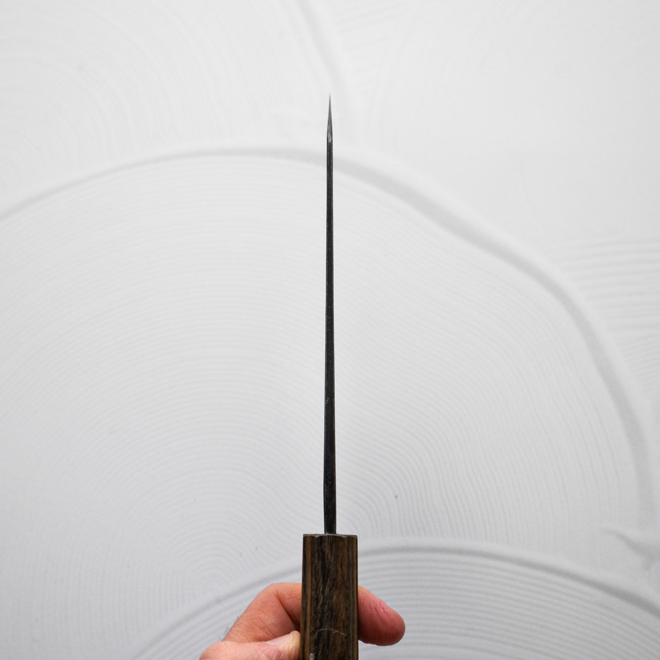 The Honesuki is the single or double bevel knife for breaking down poultry. Its thick blade and angled tip allow for heavy duty tasks and also precise work.