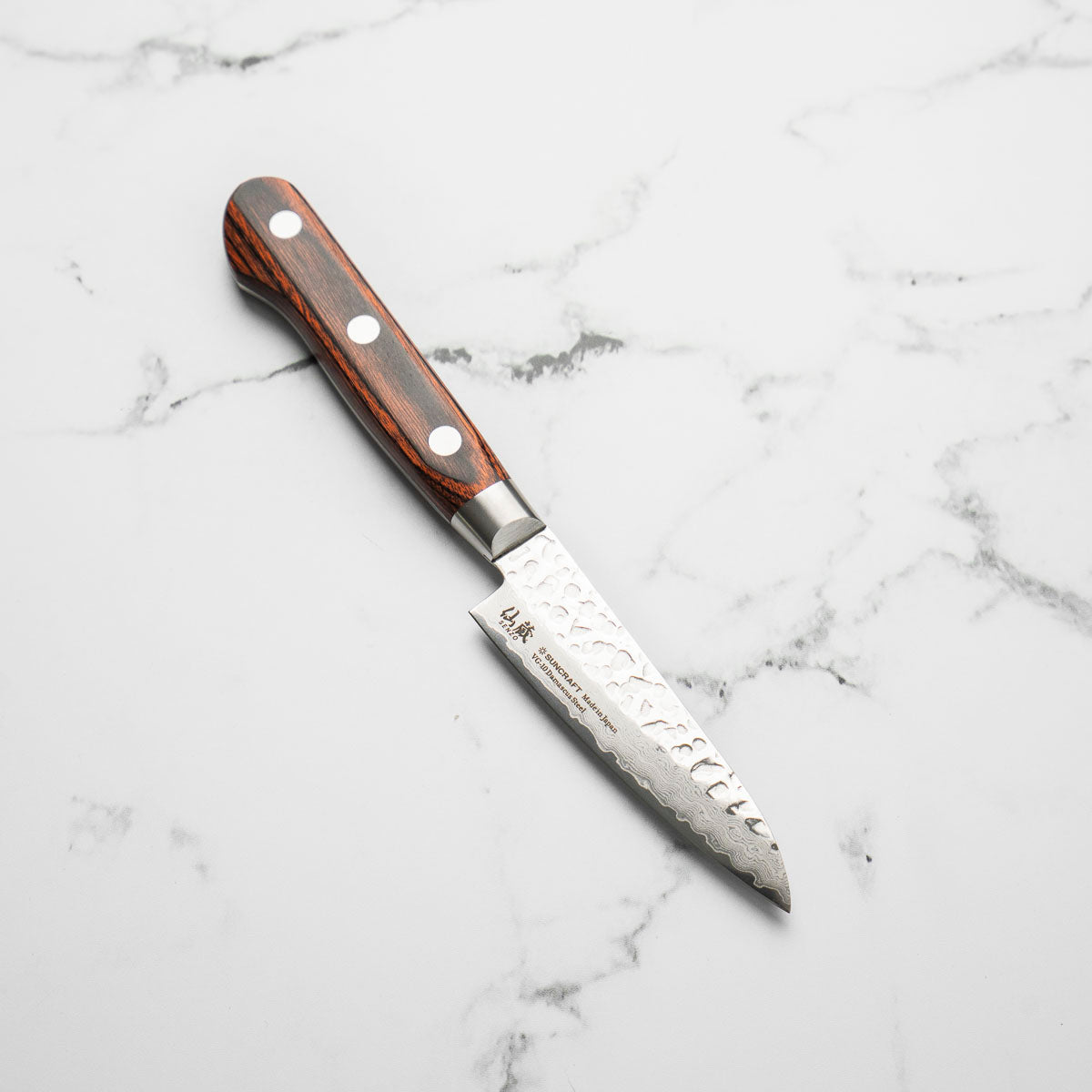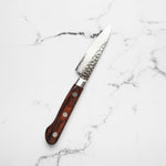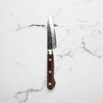 A paring knife, sometimes also known as a petty knife, is a small yet versatile tool, ideal for precise culinary tasks. Traditionally used for peeling, shaping, and delicate cutting, its compact size and sharp edge allow for meticulous control, making it essential for detailed work in fruits, vegetables, and garnishes.