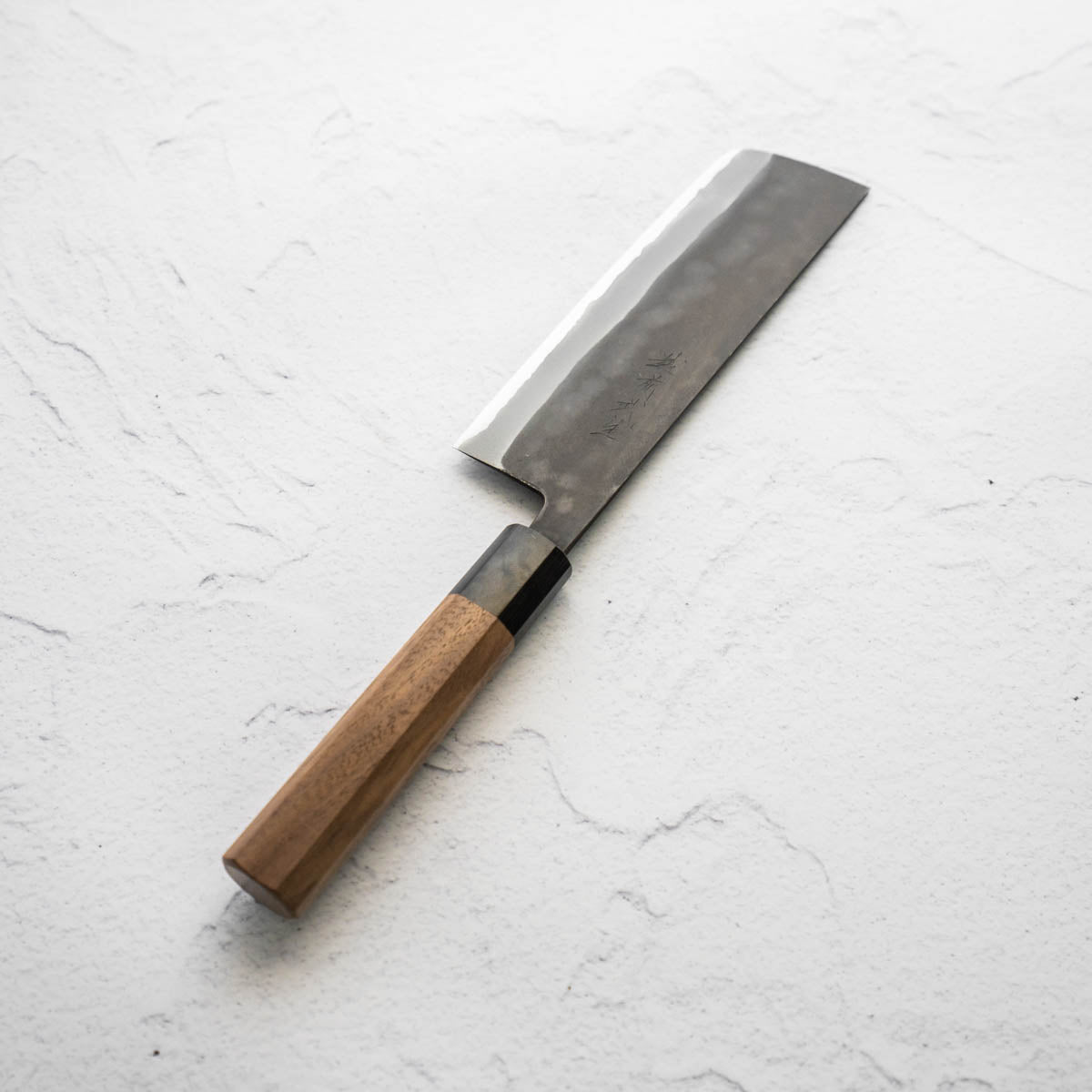 Shiro Kamo Blue Super SS Clad Kurouchi Nakiri 165mm