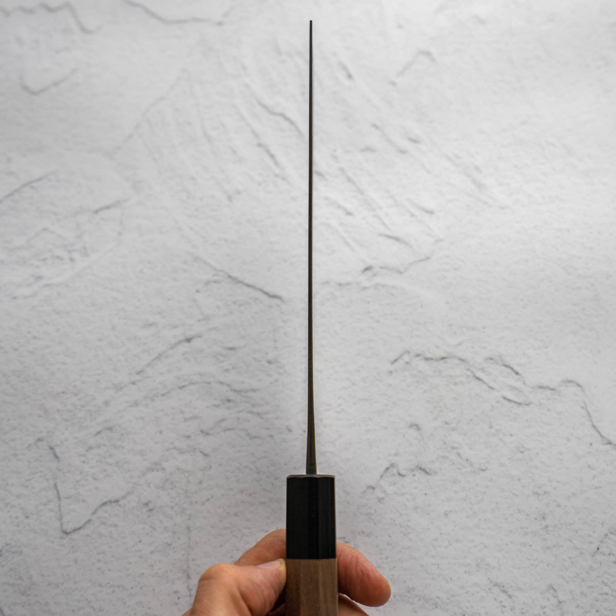 Currently serving as the president of the renowned Takefu Knife Village Cooperative, Kamo-san produces knives admired for their consistently precise grinds, refined blade finishes, and meticulous attention to detail. His expertise with steels, particularly his celebrated heat treatment of R2 stainless steel, ensures blades with phenomenal cutting performance and outstanding edge retention.