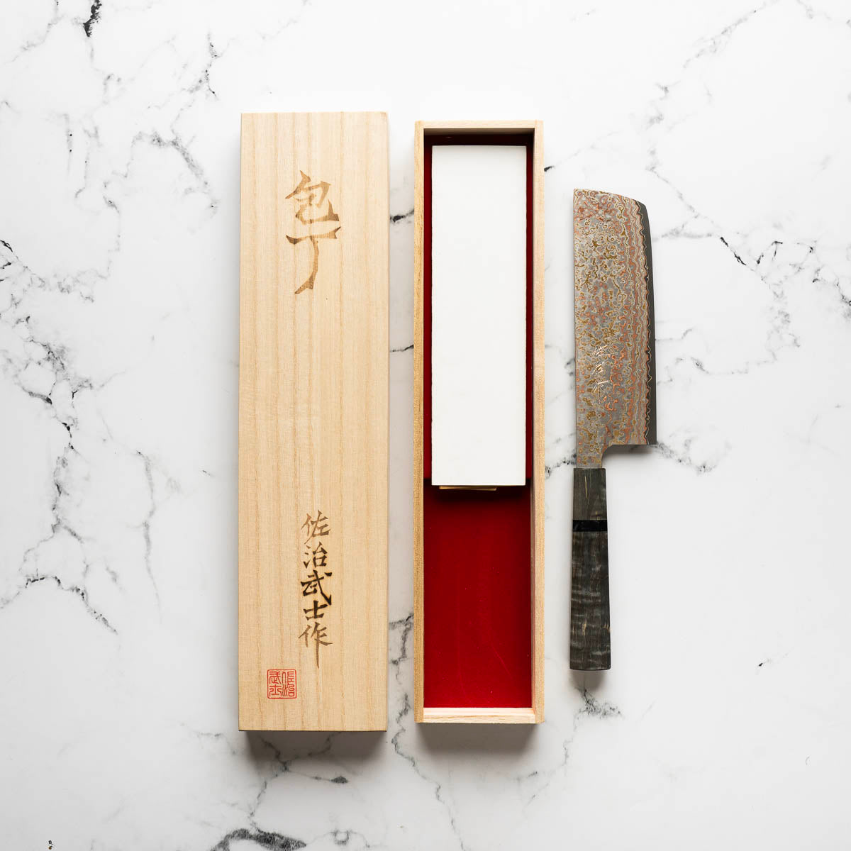 From his forge in the heart of Takefu Knife Village, Takeshi Saji continues to produce some of the most visually striking and technically masterful knives in Japan. Now in his seventies, Saji-san remains one of the most dynamic and prolific blacksmiths working today — blending traditional forging techniques with bold, contemporary design.