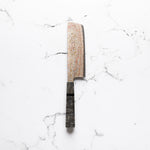 The Nakiri knife, revered in Japanese culinary traditions, is engineered for exceptional vegetable cutting. Featuring a distinct, straight-edged, and rectangular blade, it excels in creating uniform, precise cuts and aesthetic presentation. Its technical design ensures efficiency and precision, making it a valuable tool for both professional chefs and home cooks.