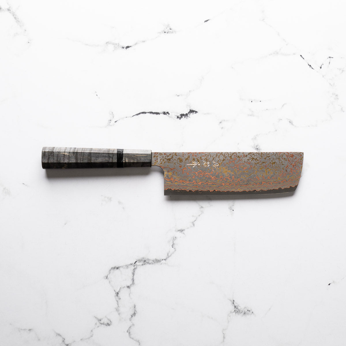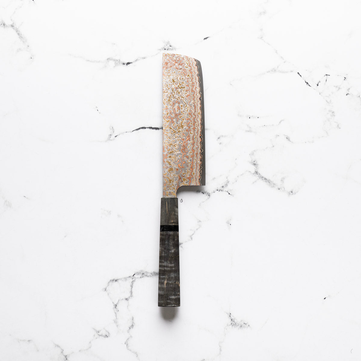 Takeshi Saji VG10-W Nashiji Rainbow Damascus Nakiri - Dark Maple