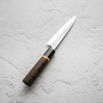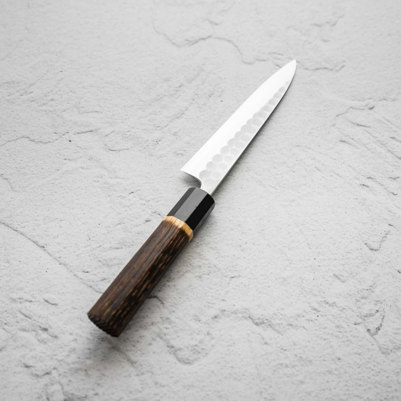 The Petty knife, a quintessential tool in Japanese cuisine, is a smaller utility knife used for precise, delicate tasks. Often considered a smaller sibling to the chef's knife, it excels in hand-held tasks like peeling, trimming, and intricate cutting. Its versatility makes it an essential for detailed culinary work.