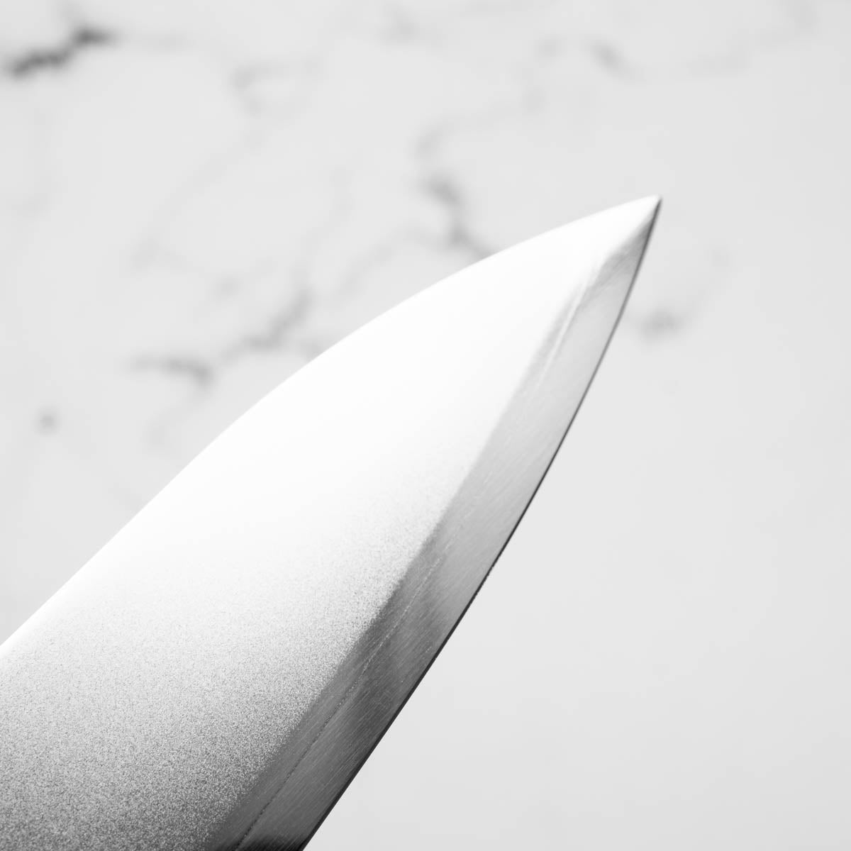 This knife is made from a high-carbon steel and as such, will require a little more care than a regular off-the-shelf knife. It must be dried shortly after use, as prolonged exposure to moisture can cause rust spots to appear. A very light coat of oil during storage also helps to prevent rust spots. A patina (colouration and seasoning of the steel) will occur with use.