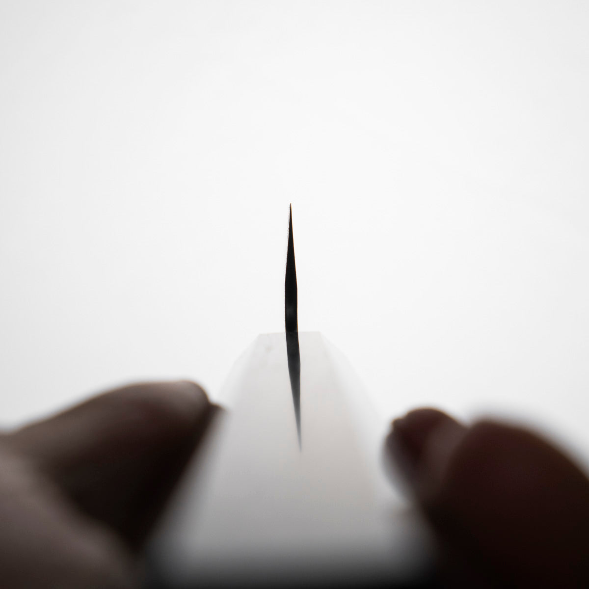 Nigara Hamono are truly some of the most experienced knifemakers in Japan. Now on their 8th generation of blacksmiths, they are masters at stainless damascus forging and heat treatment. The Anmon Damascus we have available have a matte finish and are polished underneath, resulting in a brilliant visual contrast.