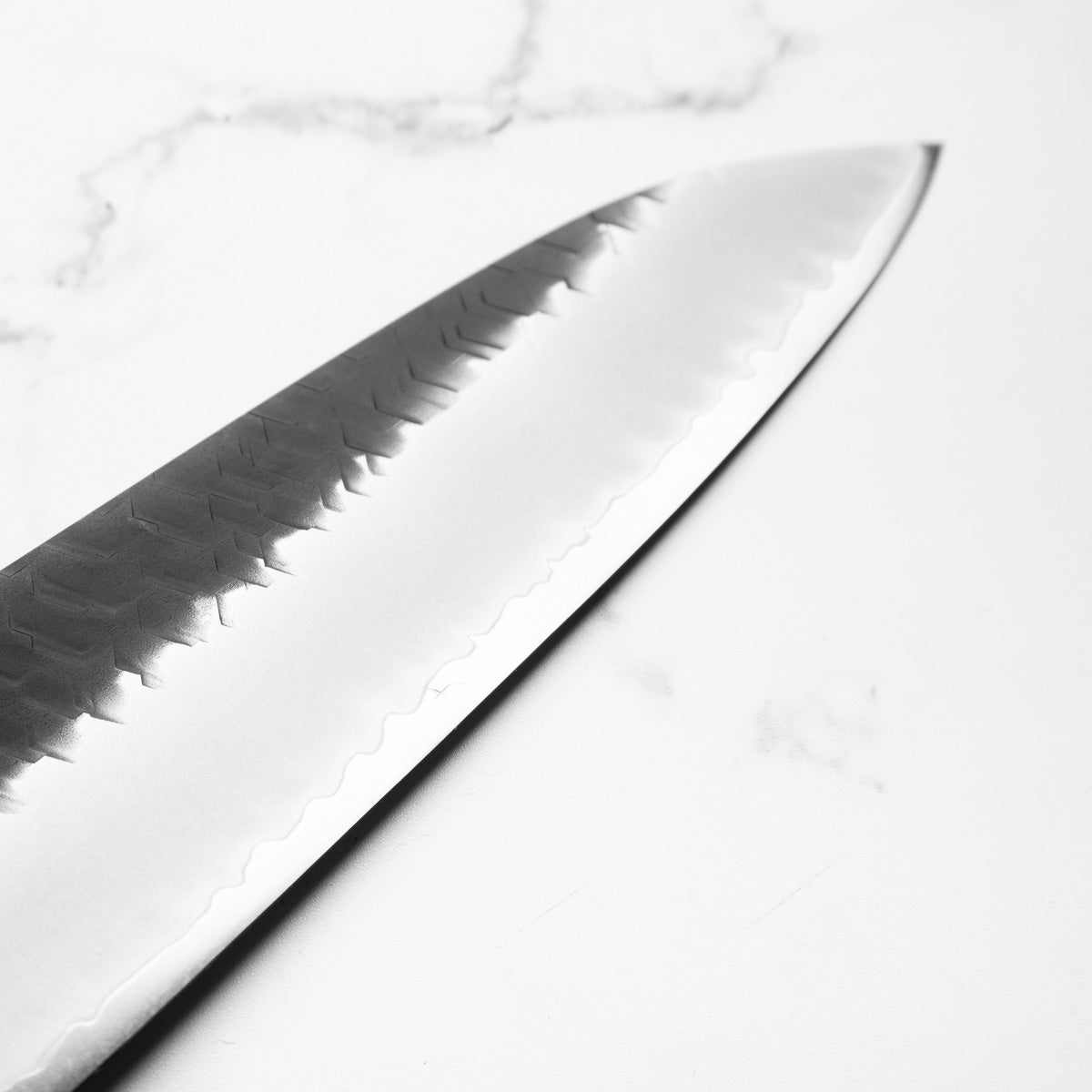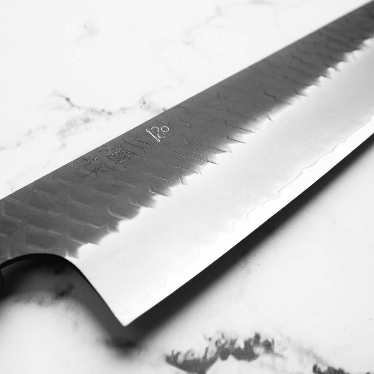 Japanese SG2, also known as R2 steel, is a high-end, powdered metallurgy stainless steel and one of the finest knife-making steels available in Japan. It is a favourite of many for its exceptional hardness and edge retention. Its fine, uniform grain structure enables razor-sharp edges, all the while holding an edge for much longer than Carbon steel knives, without needing to be concerned about rust appearing.