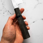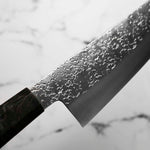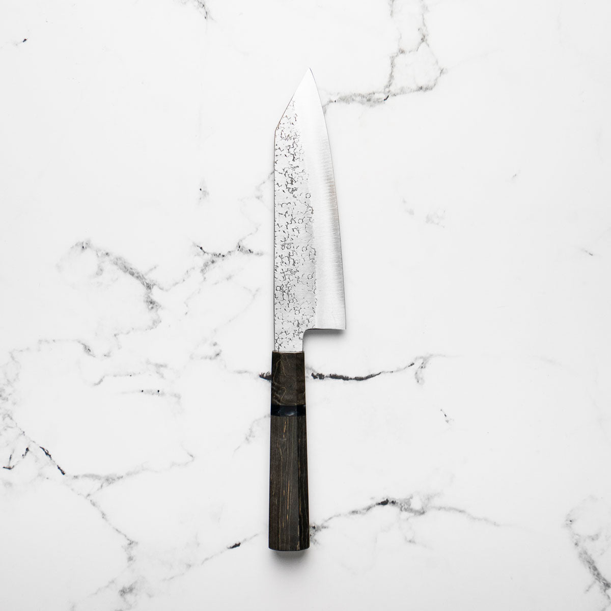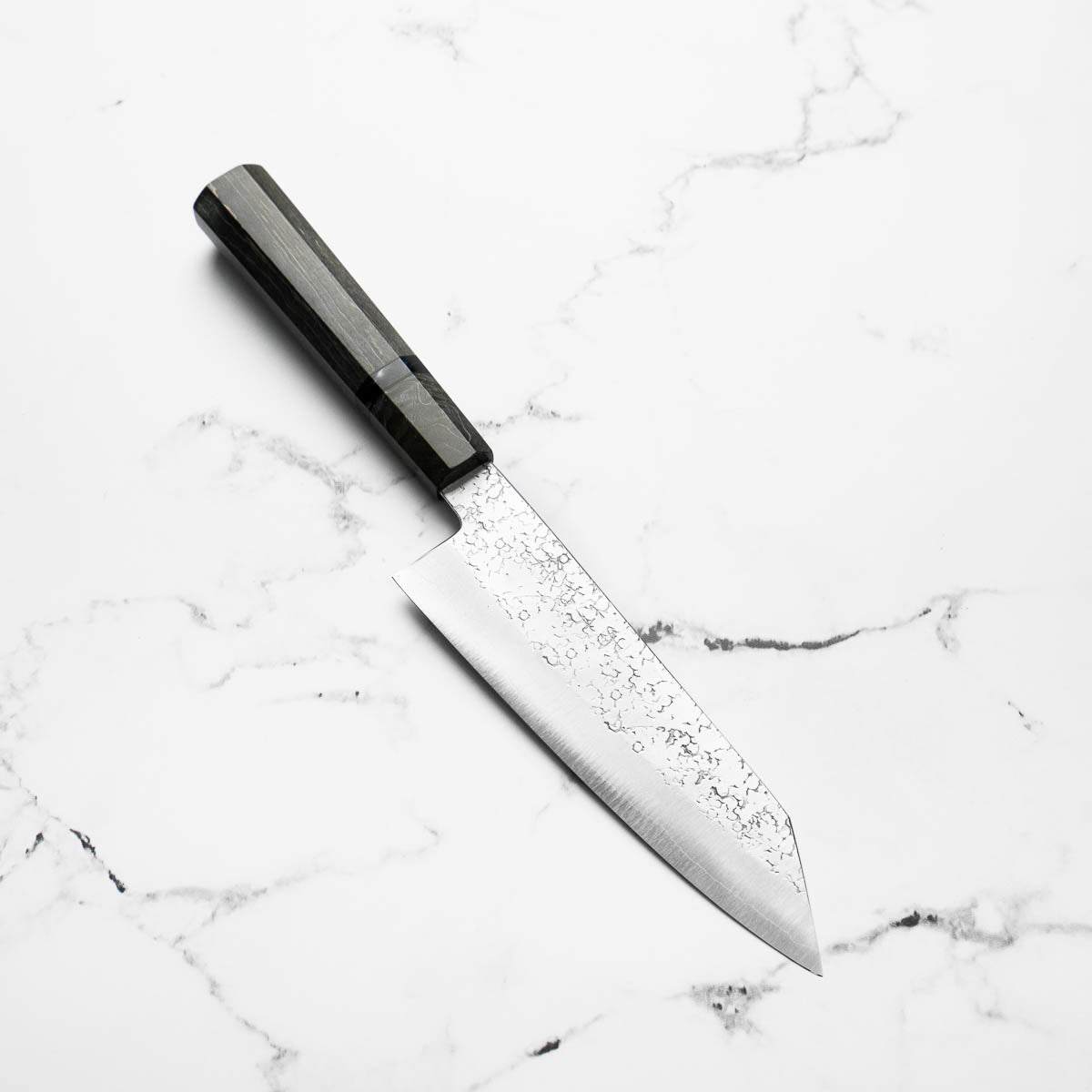 The Bunka knife, a versatile and traditional Japanese kitchen tool, features a distinctive, angular tip and a wide blade. It's designed for precision tasks like slicing, dicing, and chopping. Ideal for handling vegetables, meat, and fish, the Bunka is a multifunctional knife celebrated for its utility and unique aesthetic.