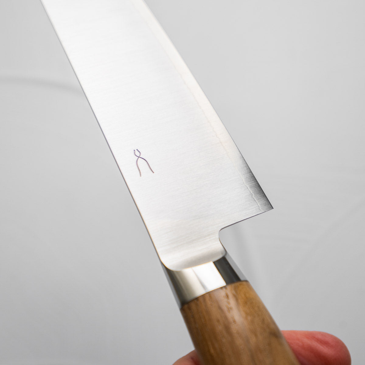 A gorgeous knife that is light to hold and, as you would expect with Japanese steel, incredibly sharp.