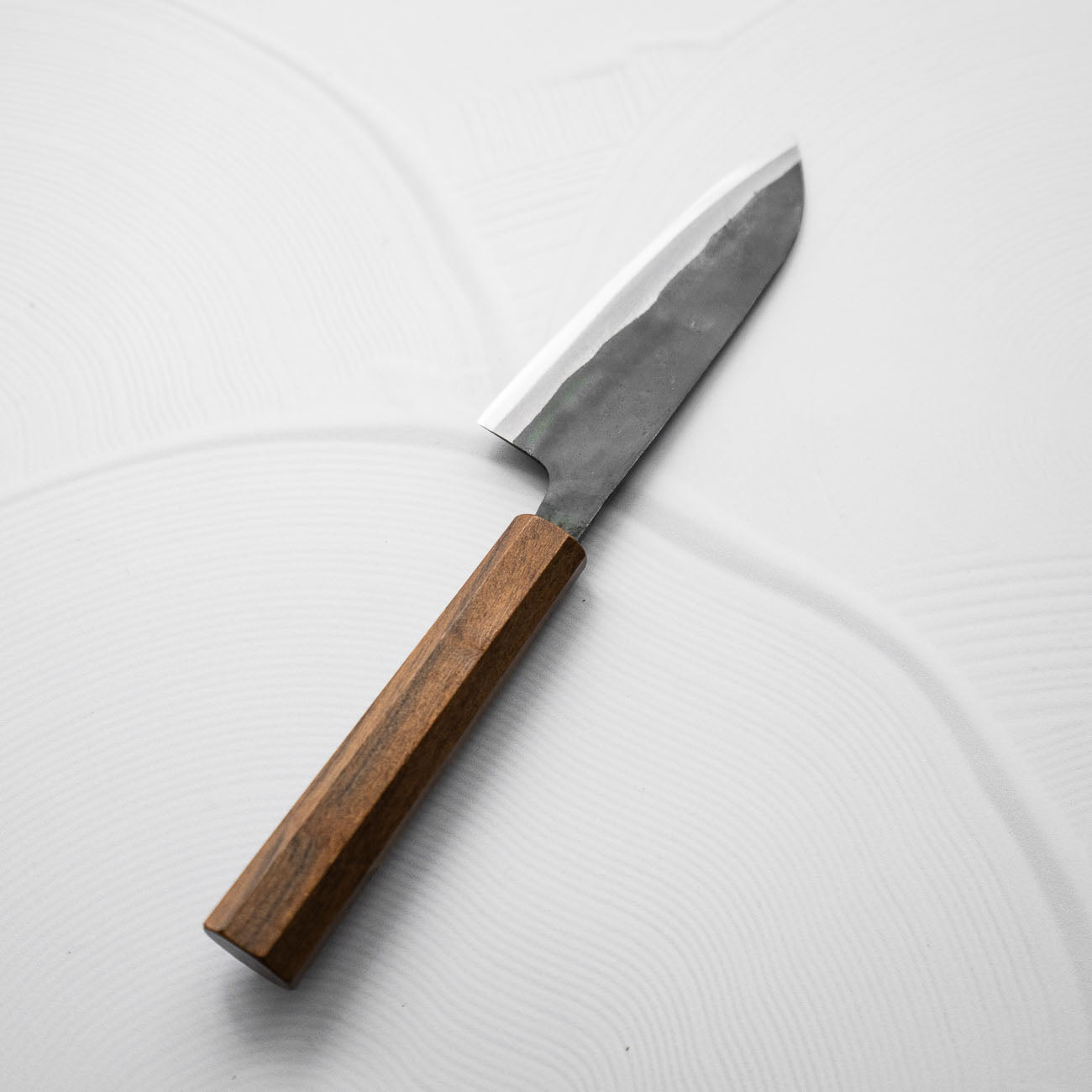 The Petty knife, a quintessential tool in Japanese cuisine, is a smaller utility knife used for precise, delicate tasks. Often considered a smaller sibling to the chef's knife, it excels in hand-held tasks like peeling, trimming, and intricate cutting. Its versatility makes it an essential for detailed culinary work.