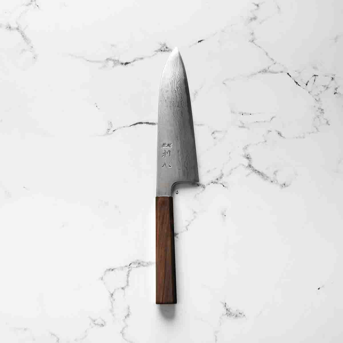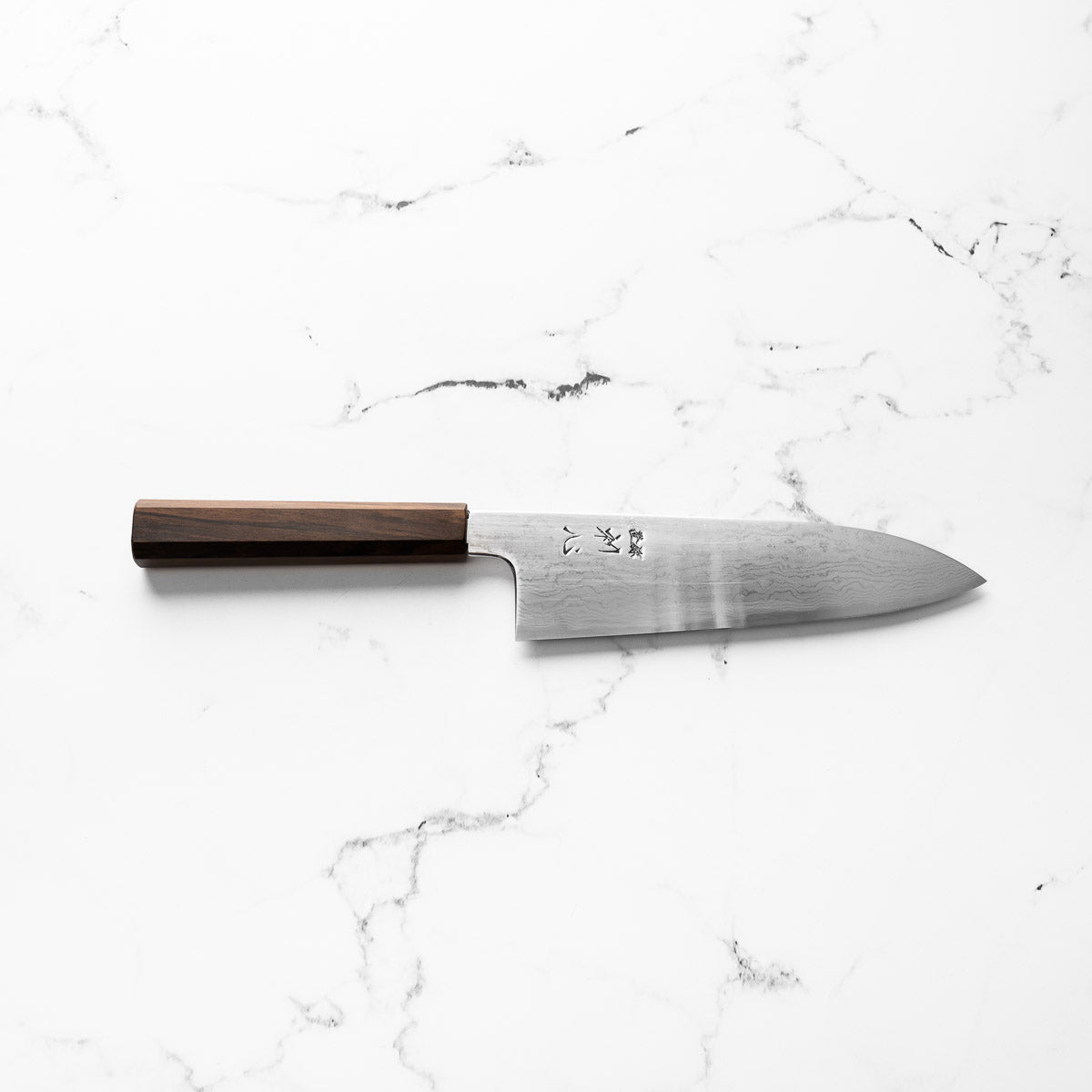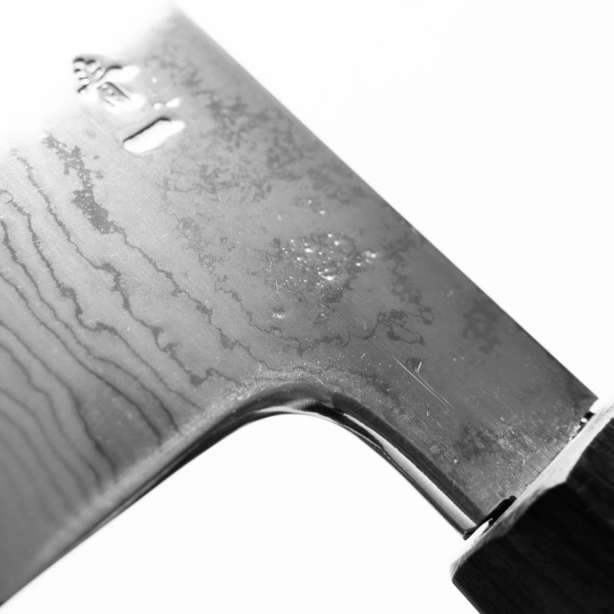 Hatsukokoro Komorebi Damascus B Grade BF25 Santoku 180mm - Ebony